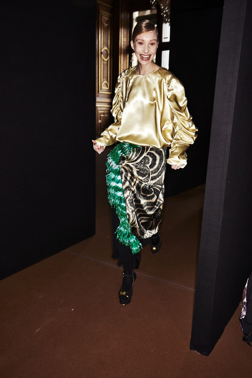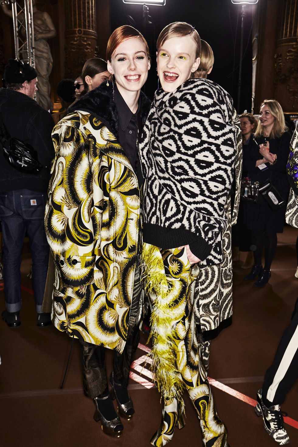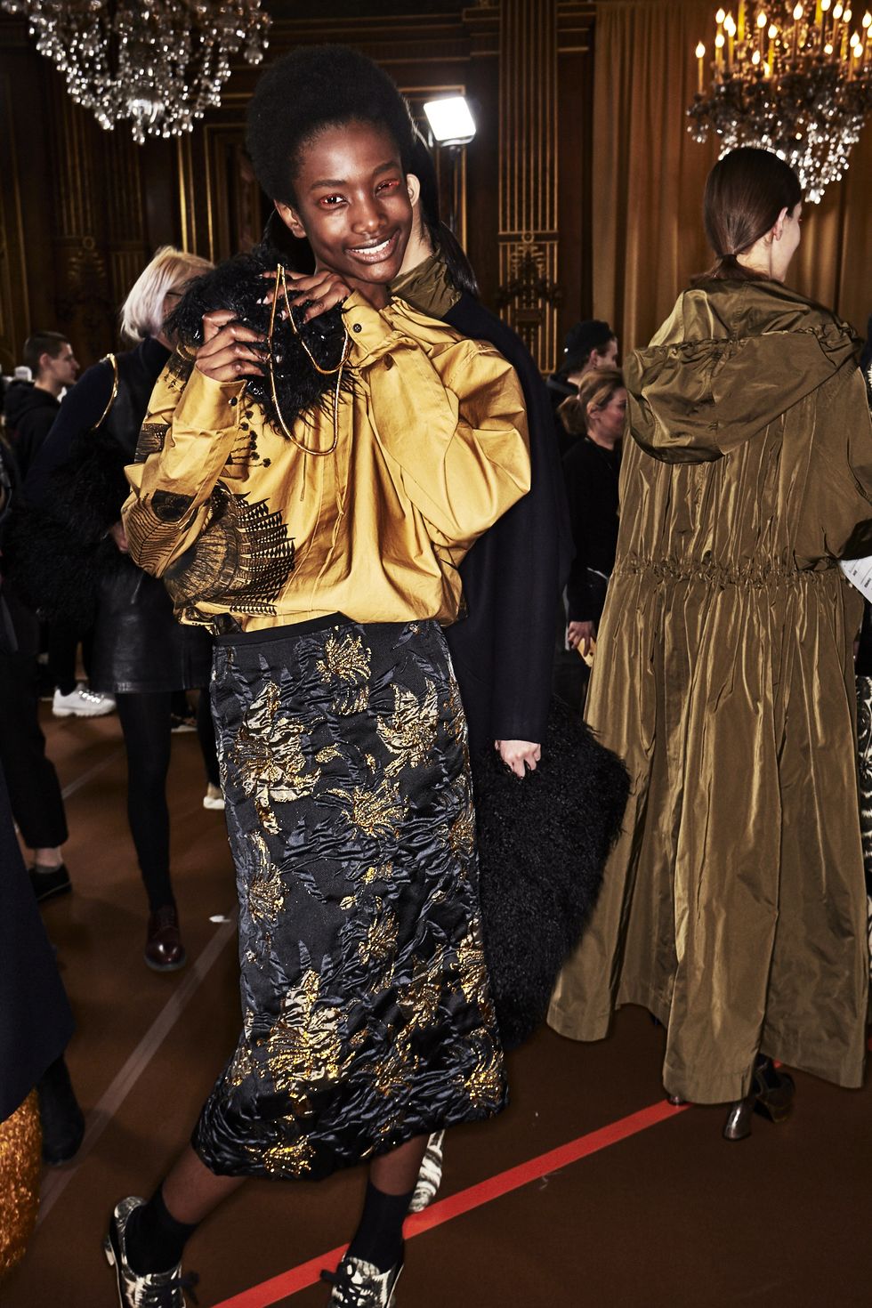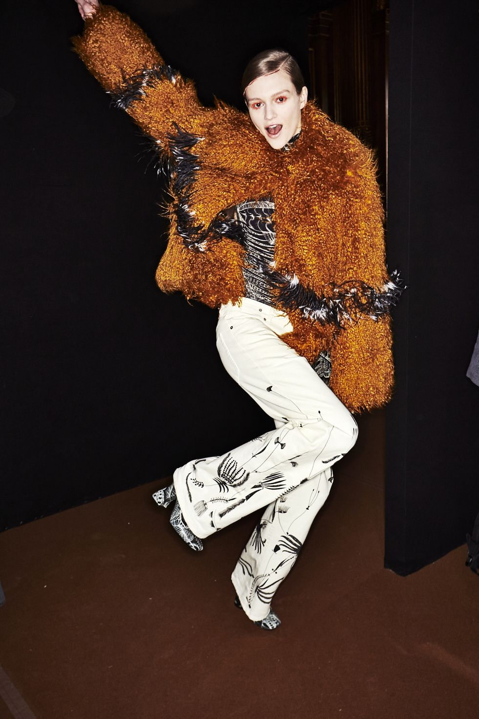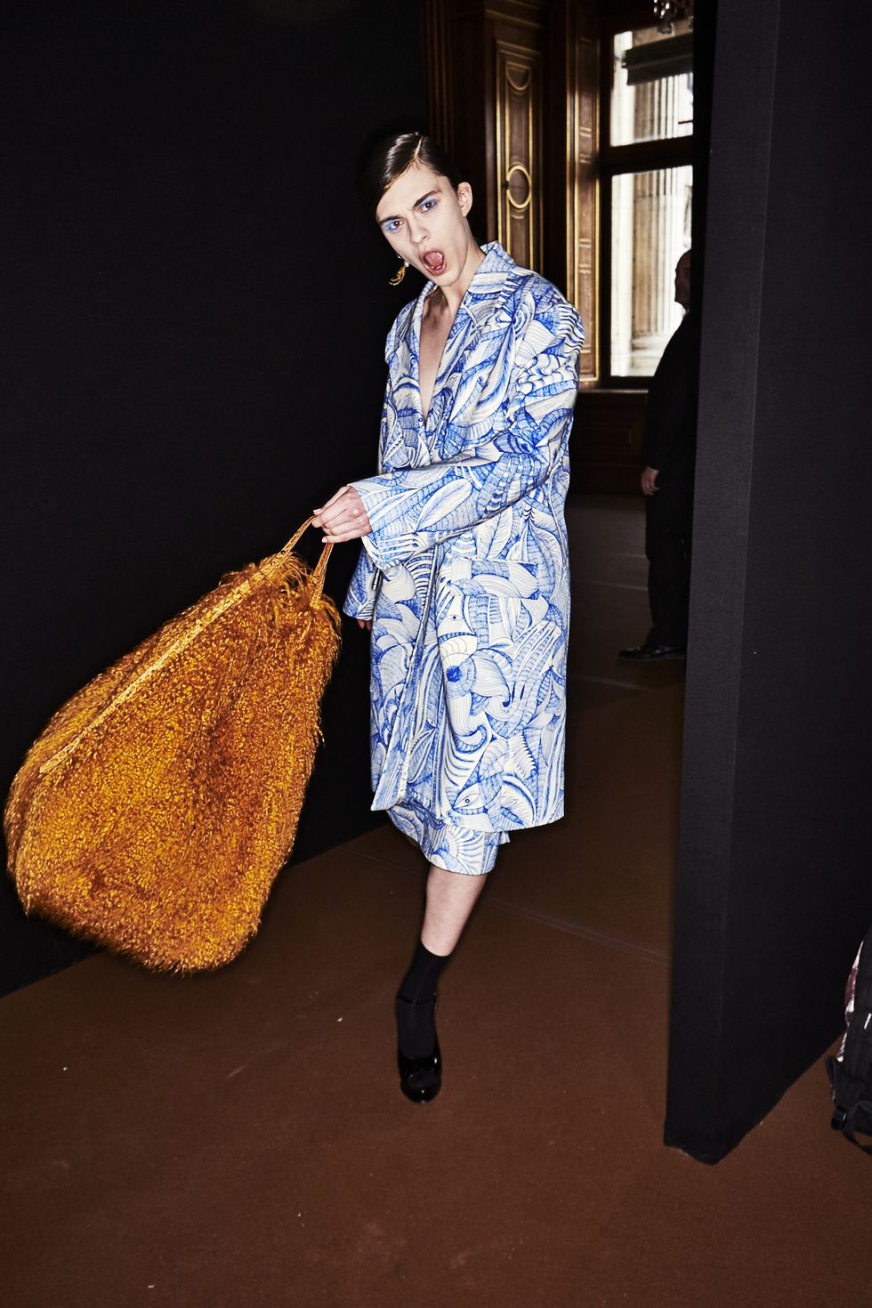 Colorful coats were anchor looks, with Dries' take on the bomber jacket (looks like the style is here to stay for a while longer), the anorak (hello road cone orange!) and full-length fluffy furs (perfect to don when you're running to meet Miranda on New Years Eve).