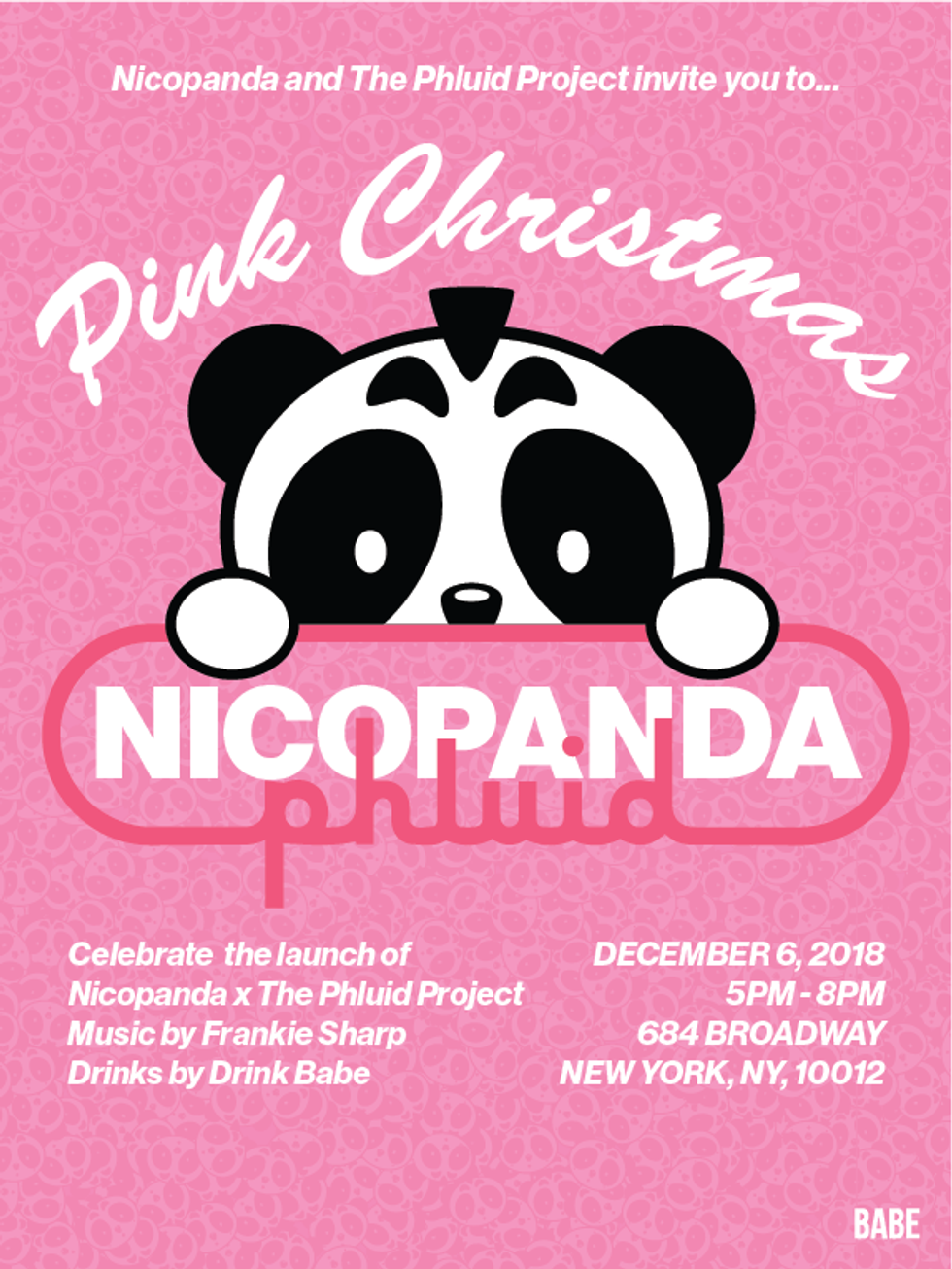 To celebrate the launch of the collaboration, NICOPANDA will be throwing a Pink Christmas takeover at The Phluid Project this Thursday with music by Frankie Sharp and drinks by Drink Babe. Check out the flyer below for more information and shop the full collaboration now available online.