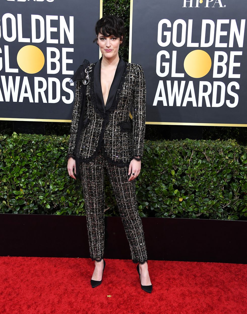 Phoebe Waller-Bridge is becoming something of an award show legend. After her Emmys photoshoot where she casually posed with cigarette and martini in hand after picking up three statues, the actress-writer stomped all over the Golden Globes red carpet in a cleavage-baring Ralph & Russo Couture tuxedo.