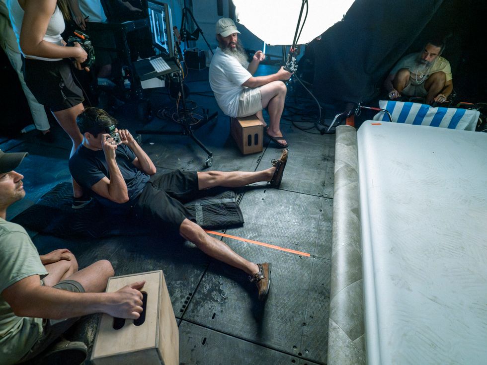 Shooting across May and June created a spectrum of elemental texture as well, as sun and rain complicated the creative brief and informed an even stronger variety of final storytelling. From standing on the highest rung of a 20-foot ladder to posing nude for the calendar himself (“To be naked in front of that many people was quite freeing,” Green said), the photographer’s immersion into the calendar’s creative process was unyielding and wholehearted.