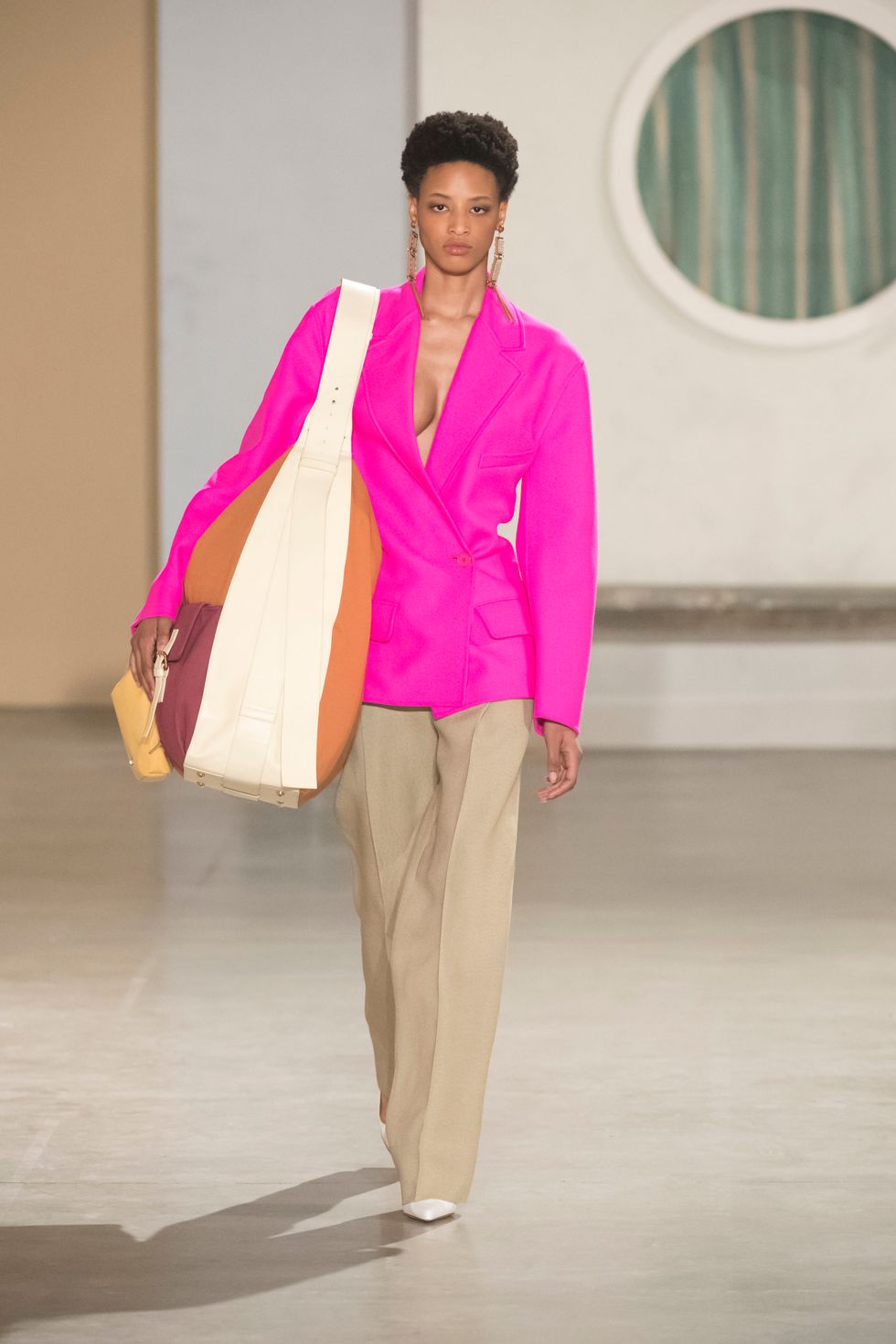 Deeply saturated fuchsia looks made a big statement given Jacquemus has a history of focusing on sophisticated neutrals. An angular blazer and one pair of trousers paired with an oversized coat were standouts.