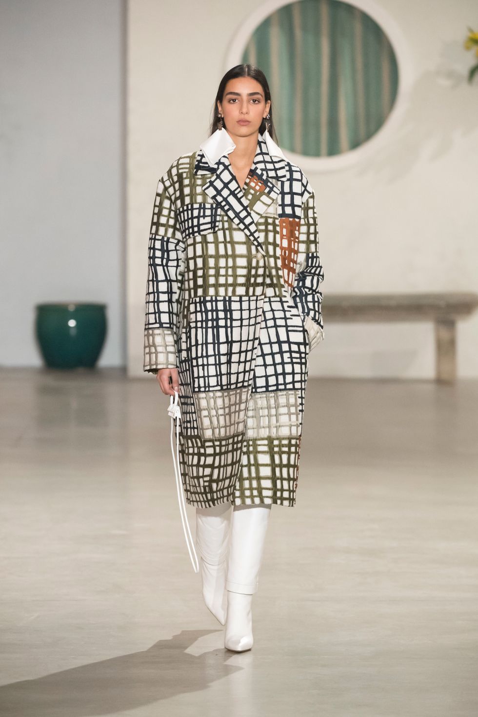 Slouchy knee and thigh high boots in cream, different shades of green, rust white and brown popped in contrast to the soft layers seen in the collection.