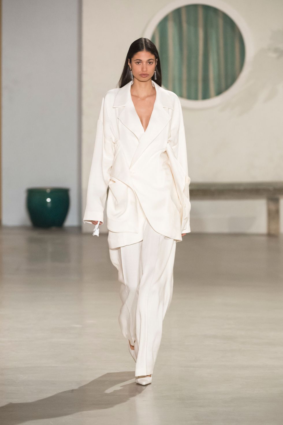 It's a trend we saw a lot of in Milan. Both Max Mara and Ferragamo explored it. Jacquemus reinterpreted it in bright whites and slightly-off, fresh colors such as periwinkle and kelly green.