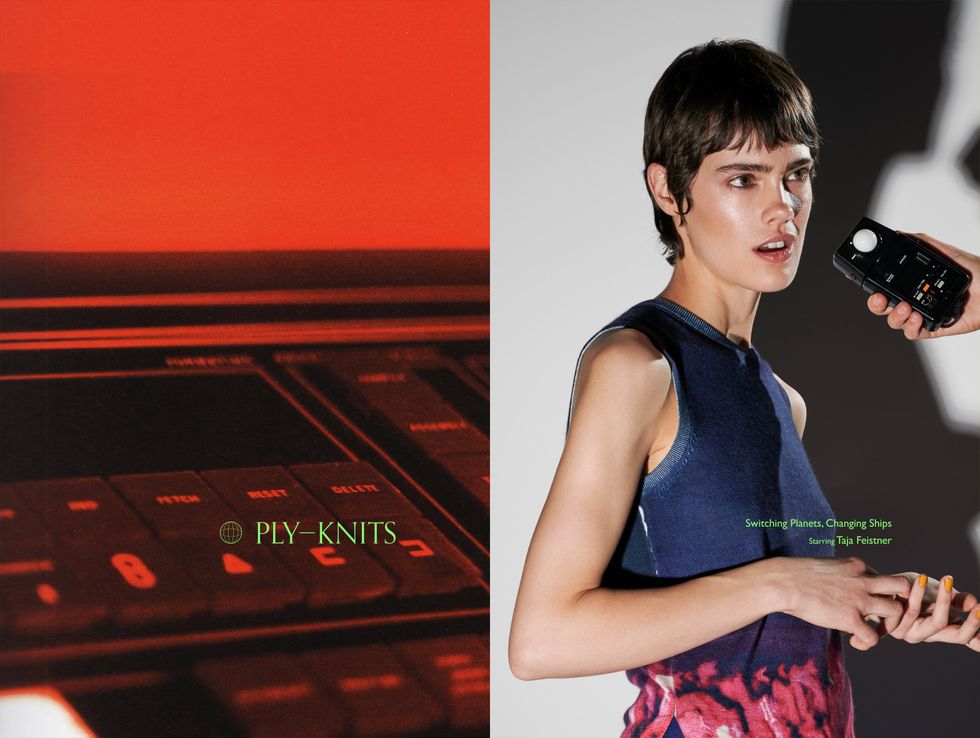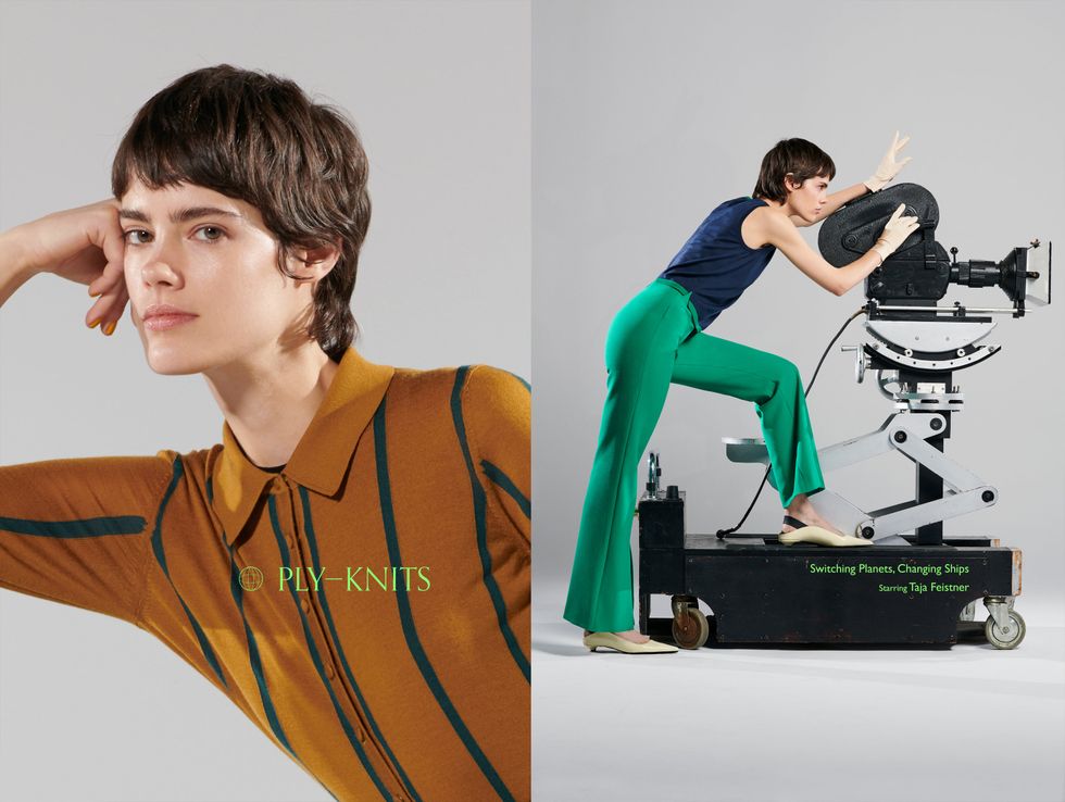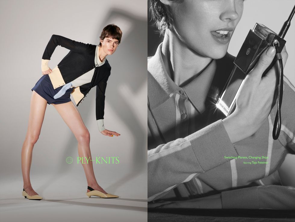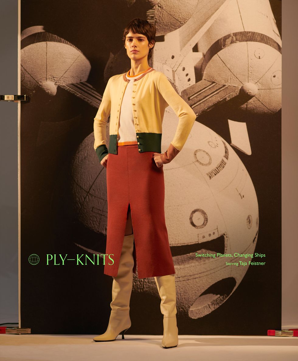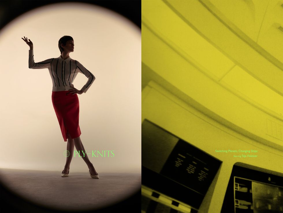 In the brand's fourth portrait series, Ply-Knits once again takes a highly conceptual approach to showcasing their latest collection. Drawing on the world of classic sci-fi, the photo series focuses less on the genre and more on the era's retro aesthetic. Yim borrows set props from Stanley Kubrick's grand sci-fi opus, 2001: A Space Odyssey, and makes use of some unused archival photos to create this uncanny valley film set where streamlined visions of tomorrow collide with the chic warmth of her knits.
