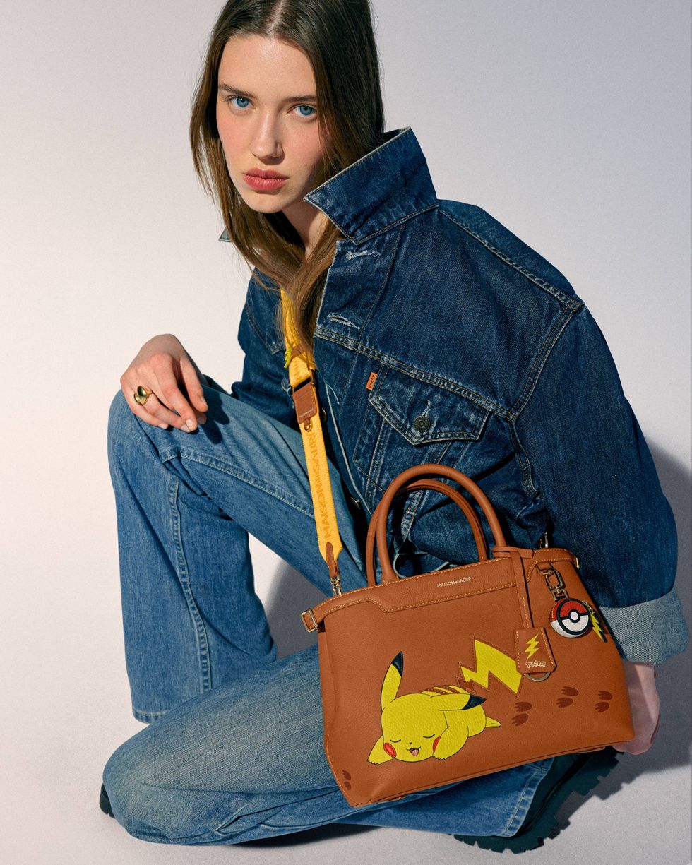 Nodding to many of Pokémon’s iconic creatures, the collection includes different motifs such as Pokéball charms and lightning bolt zippers. Handcrafted with pecan-brown leather and contrasting yellow stitching, the collaboration is a marriage of play and design.