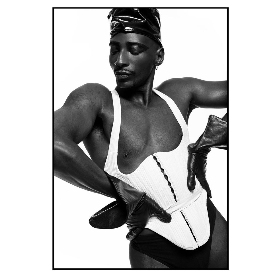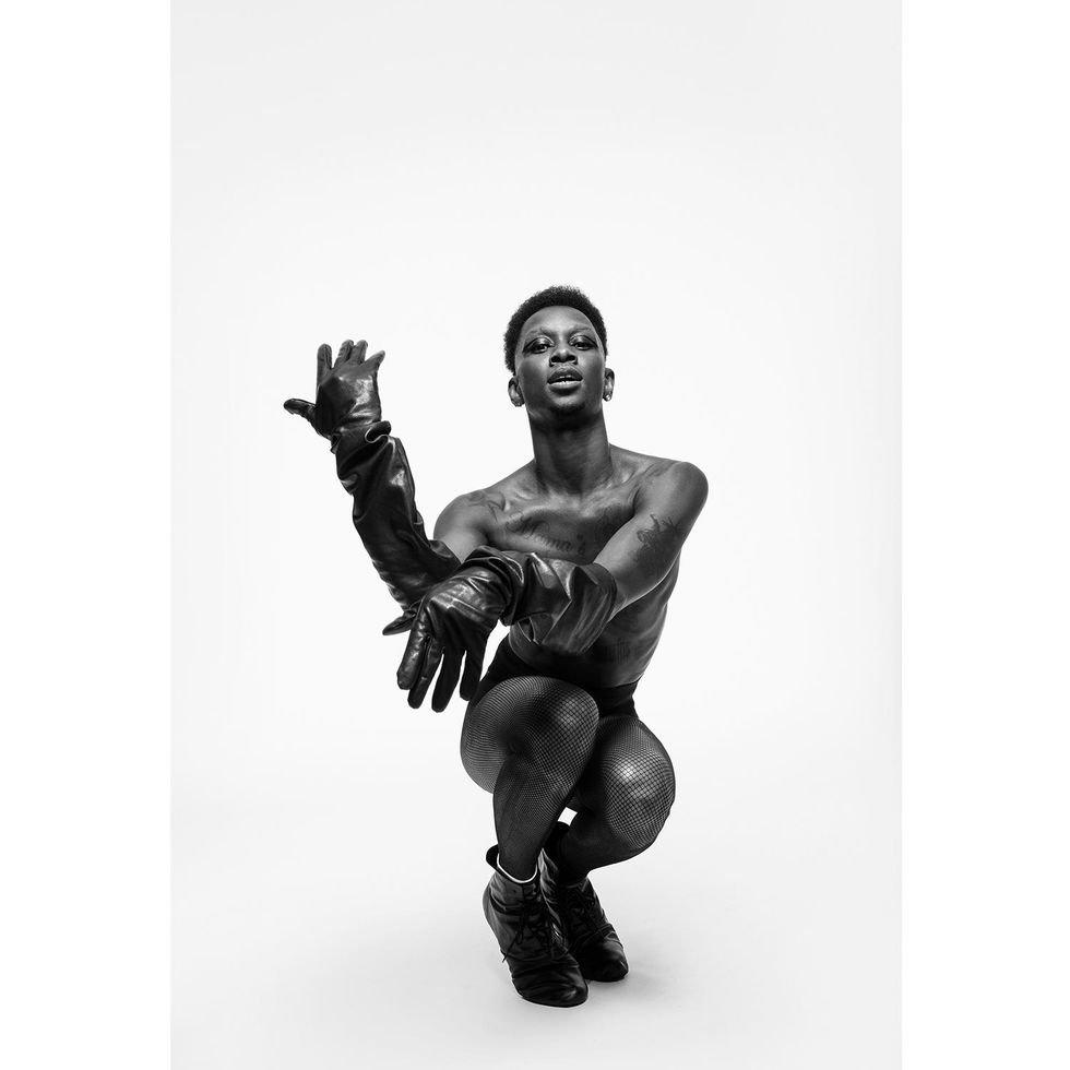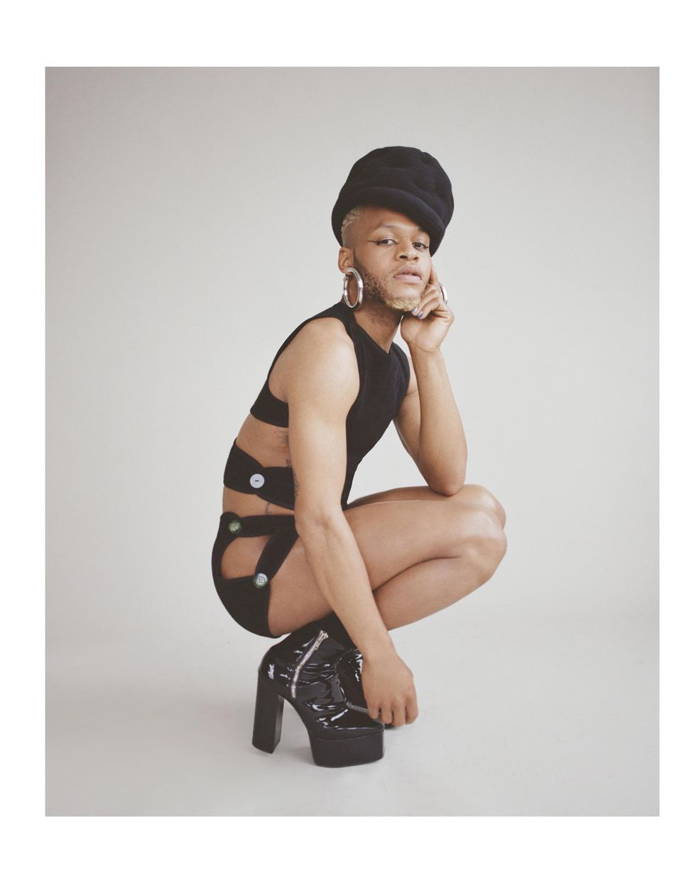 Clothing and hat: Timo Sassen, Earrings: Jennifer Fisher, Dance belt: Capezio, Socks: Calzedonia, Boots: Syro