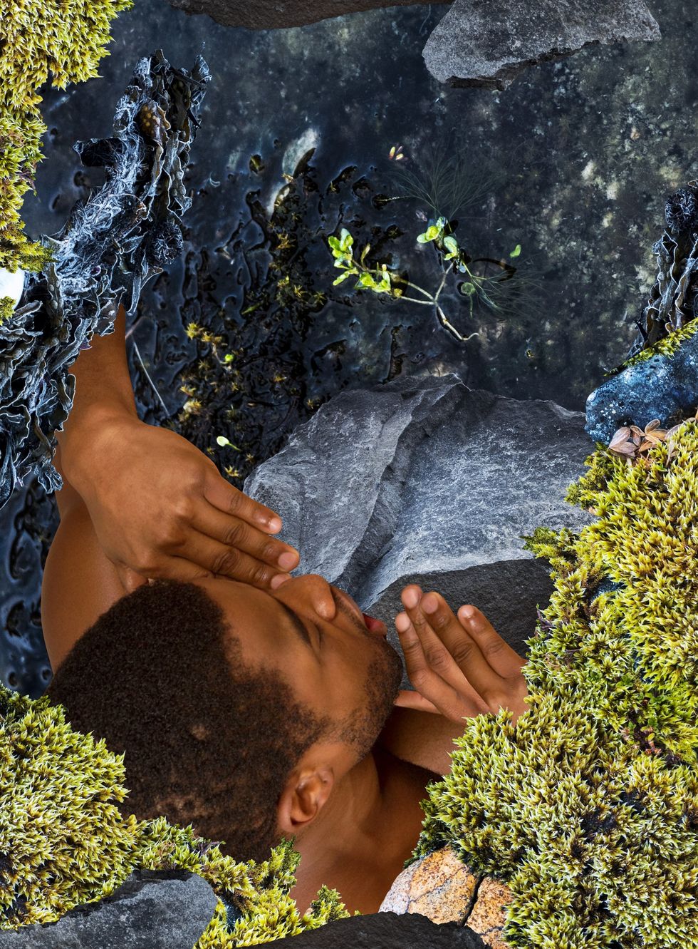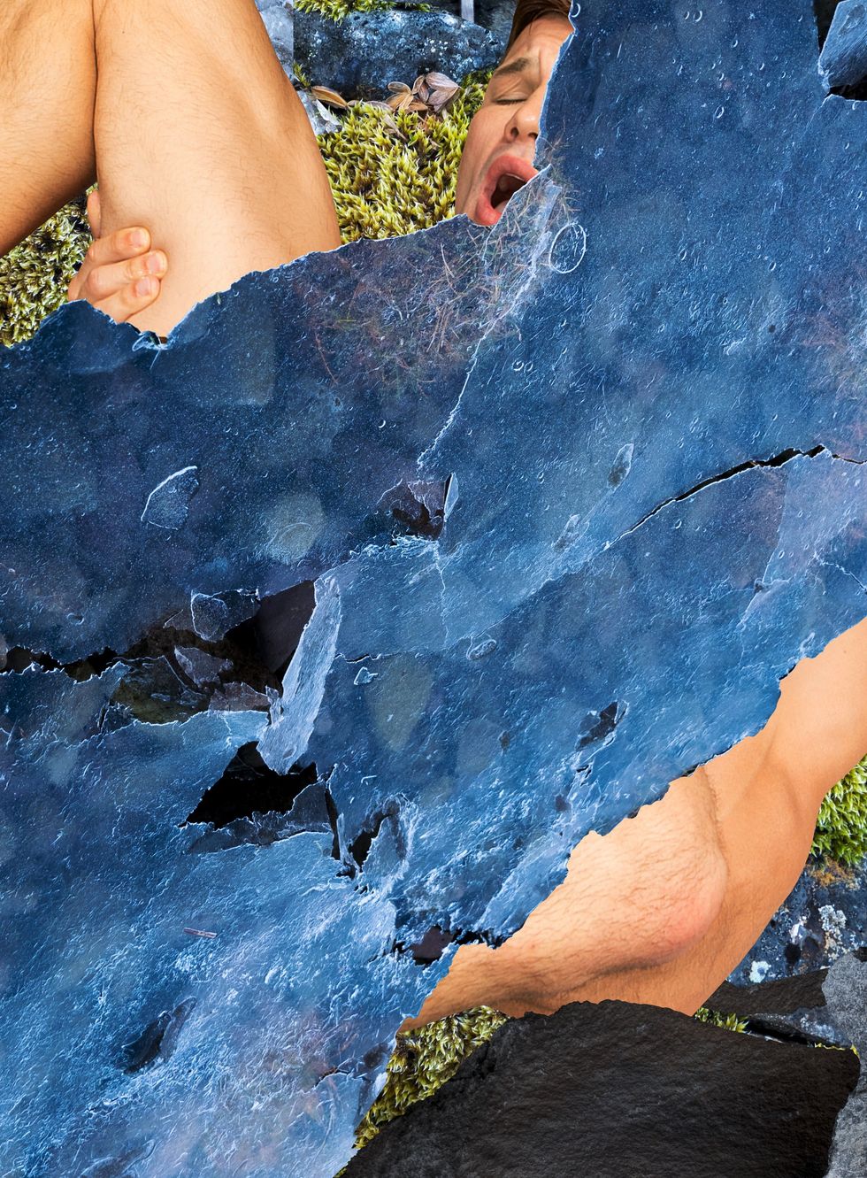 The artist's newest project, titled Fucking With Nature, applies this same model to Portis Wasp's recent travels to the Westfjords in Iceland. He's taken personal photos of the northwestern region's natural beauty to create a set of collages that mix together images from gay porn studio Sean Cody. The result is something that dangerously teeters on NSFW, if it weren't for the x-rated parts being strategically covered by Iceland's moss, rocks and water.