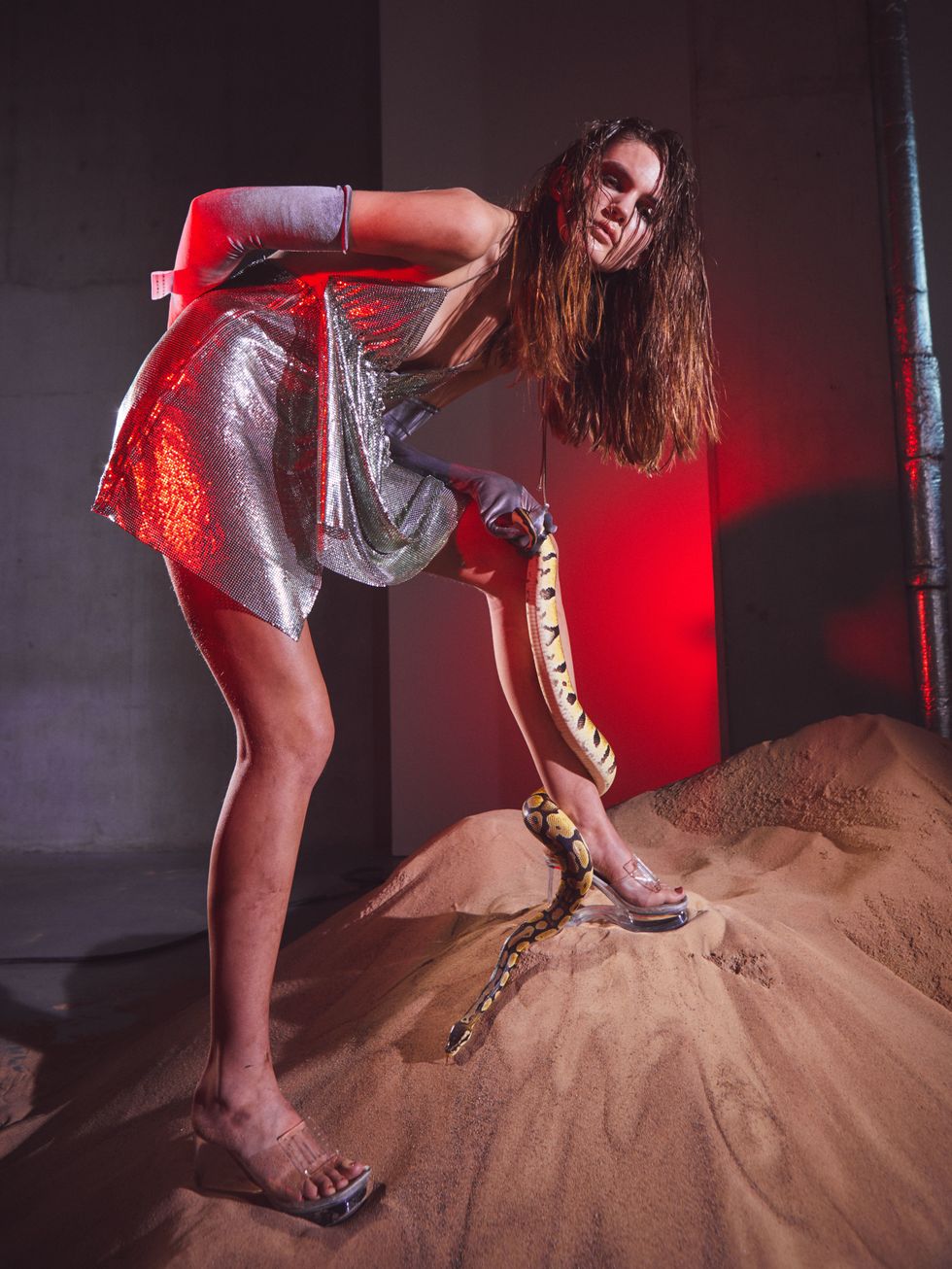 In Poster Girl's new collection, "Series 1.2," the brand departs from their candy-colored couture (that might have clad Paris Hilton at one of her many 21st birthday party celebrations) to explore a new look that is as animalistic as it is apocalyptic. For the lookbook premiere, PAPER caught up with the wildly talented creatives to chat Poster Girl's role in propelling fashion into the future.
