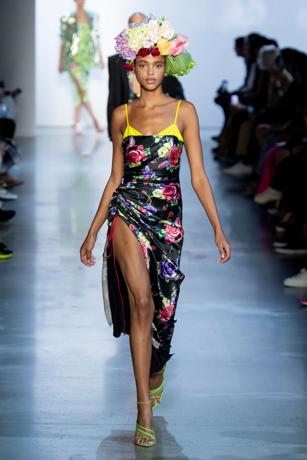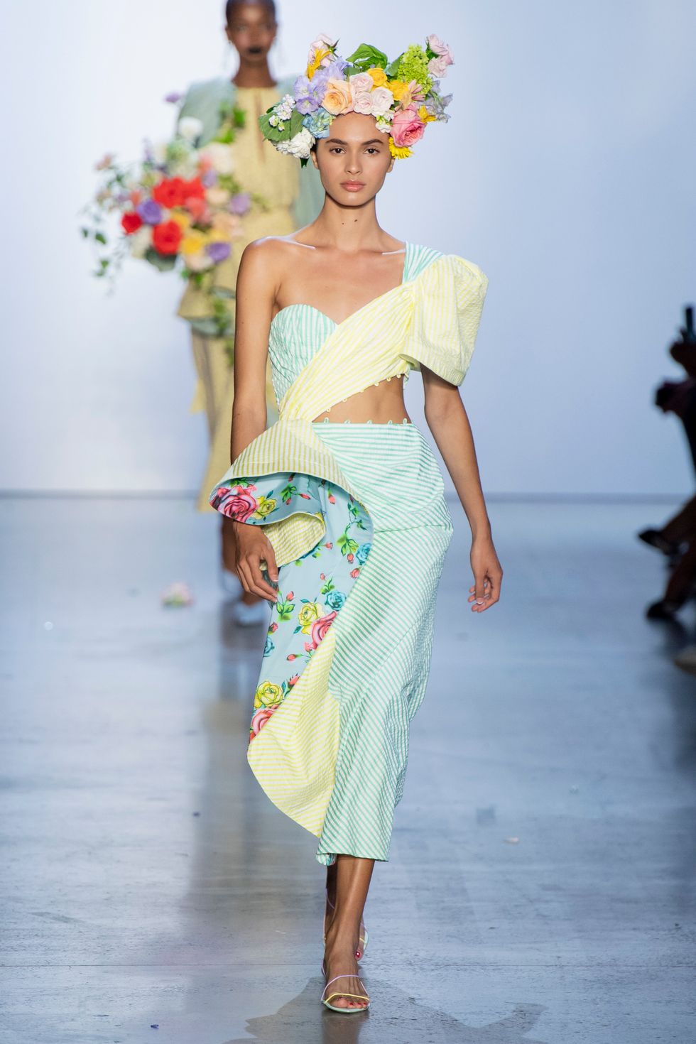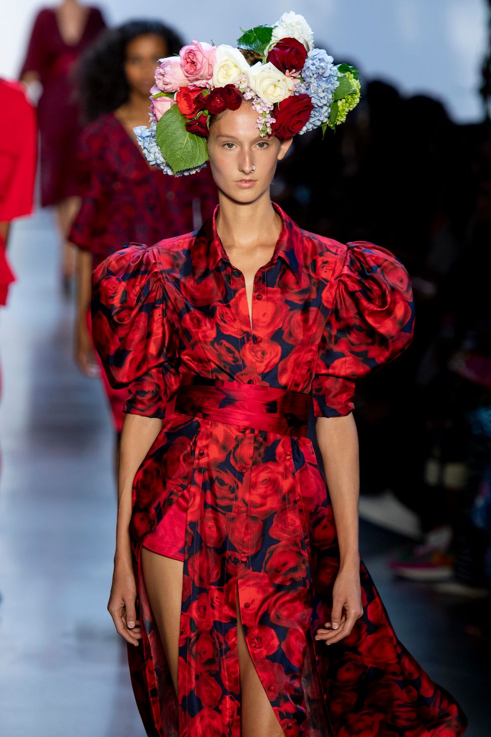 Prabal Gurung's political views are not a secret. He has been very vocal about the problems with this country's administration, and has long incorporated political and feminist elements in his shows. For his 10th anniversary Spring 2020 collection, the designer had models walk out in the finale wearing sashes with the words "Who Gets To Be American?" on display. The question itself is timely, as news about border control and immigration continue to be important issues our political leaders are having to face. Gurung is an immigrant himself (he was born in Singapore and grew up in Nepal), is known for his inclusive and diverse casts — this show was no exception. Here's everything else you need to know about the collection.
