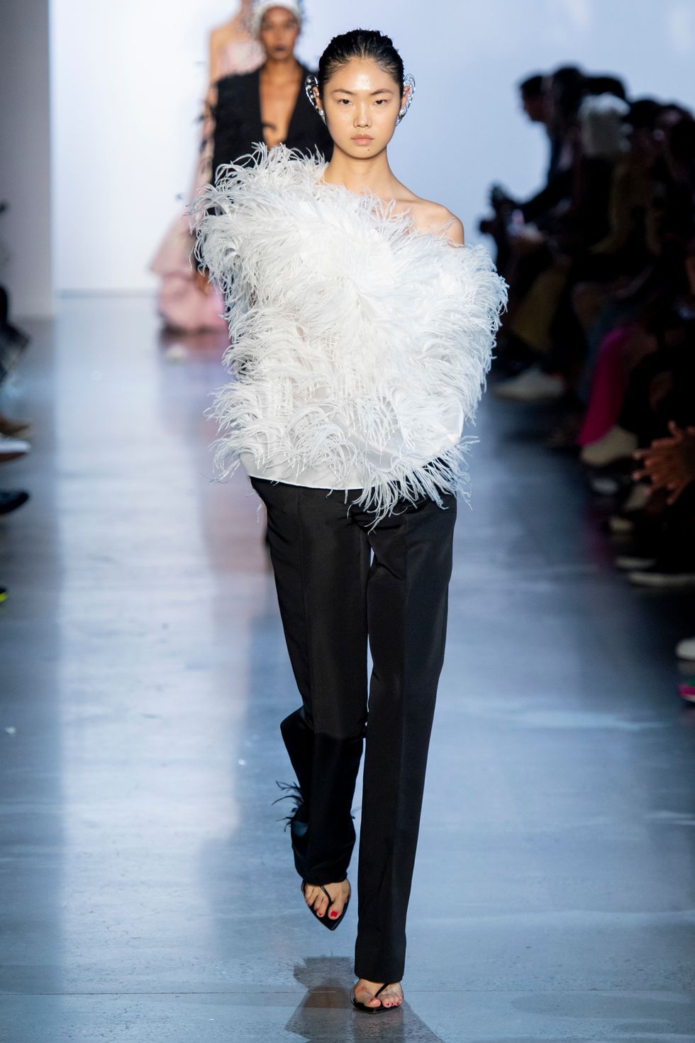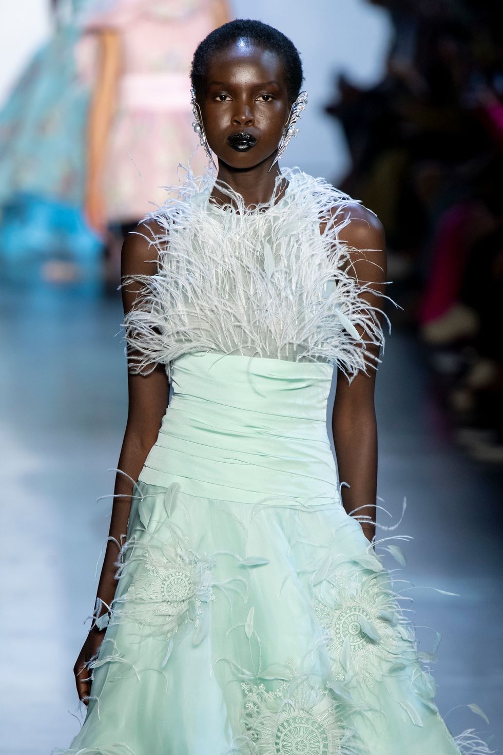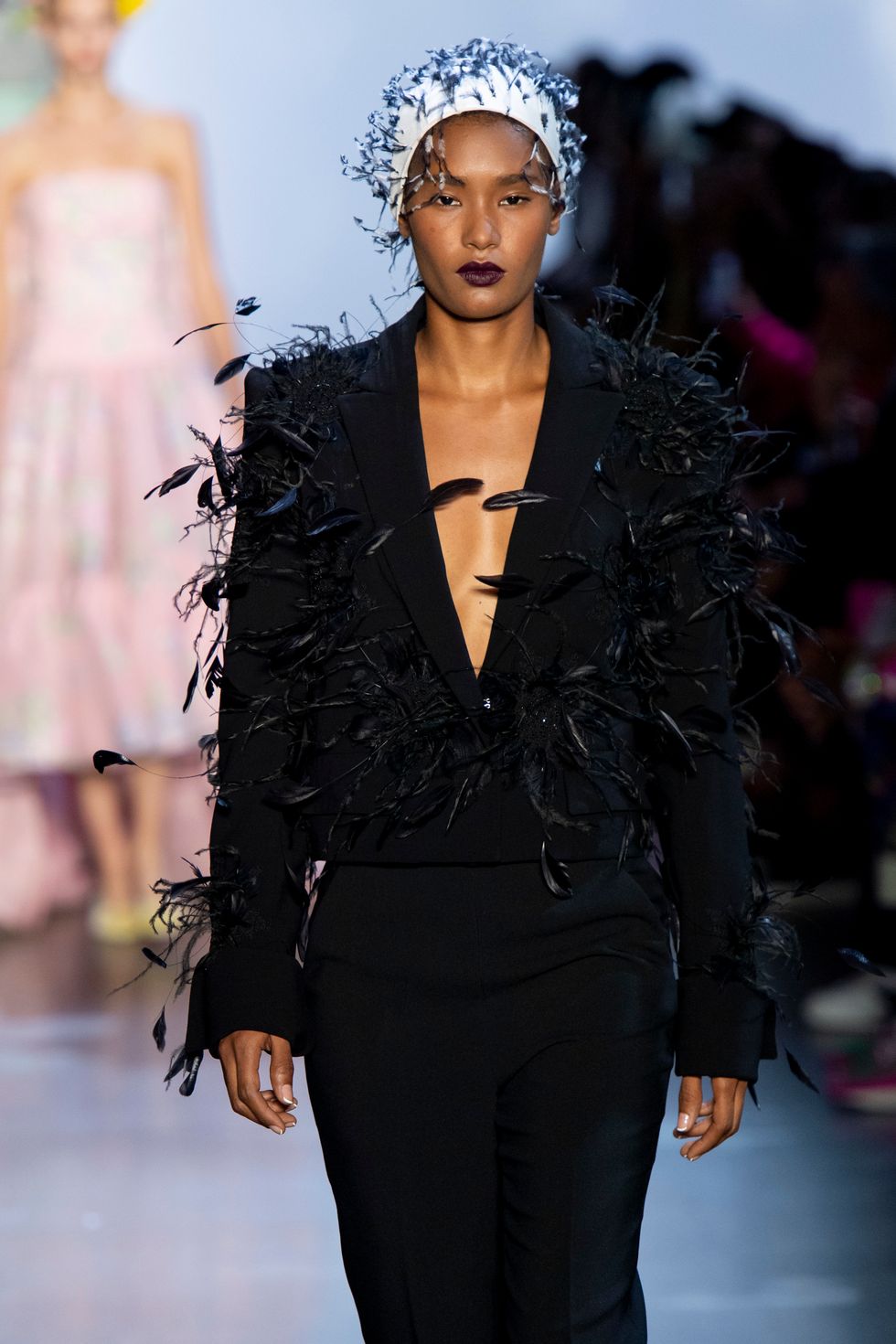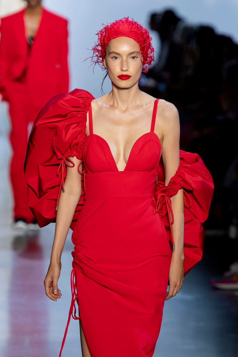 Prabal Gurung's political views are not a secret. He has been very vocal about the problems with this country's administration, and has long incorporated political and feminist elements in his shows. For his 10th anniversary Spring 2020 collection, the designer had models walk out in the finale wearing sashes with the words "Who Gets To Be American?" on display. The question itself is timely, as news about border control and immigration continue to be important issues our political leaders are having to face. Gurung is an immigrant himself (he was born in Singapore and grew up in Nepal), is known for his inclusive and diverse casts — this show was no exception. Here's everything else you need to know about the collection.