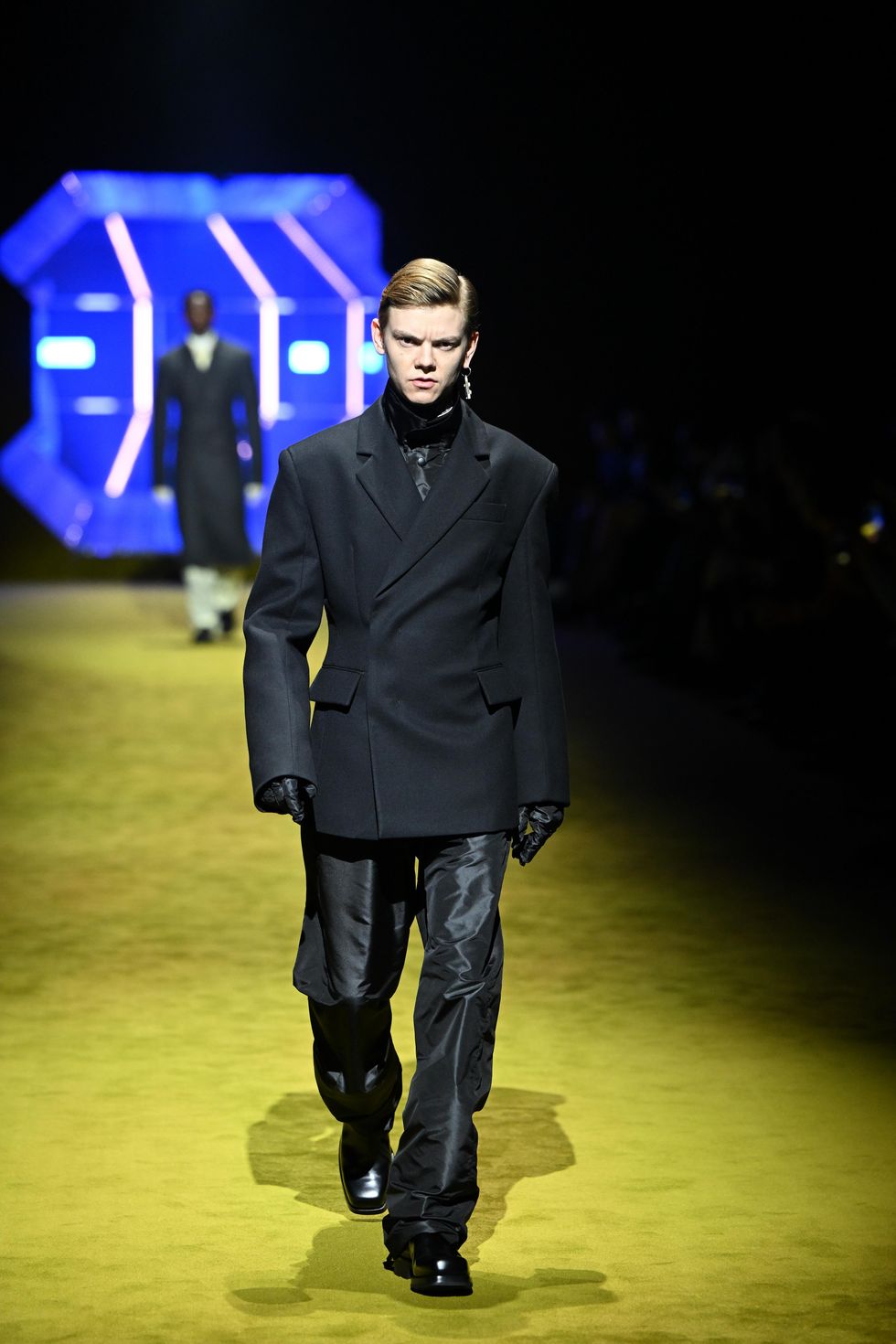 Aside from the two Hollywood stars, Prada's Fall 2022 show also featured eight other actors, including Sex Education's Asa Butterfield and The Maze Runner and Love Actually star Thomas Brodie-Sangster.
