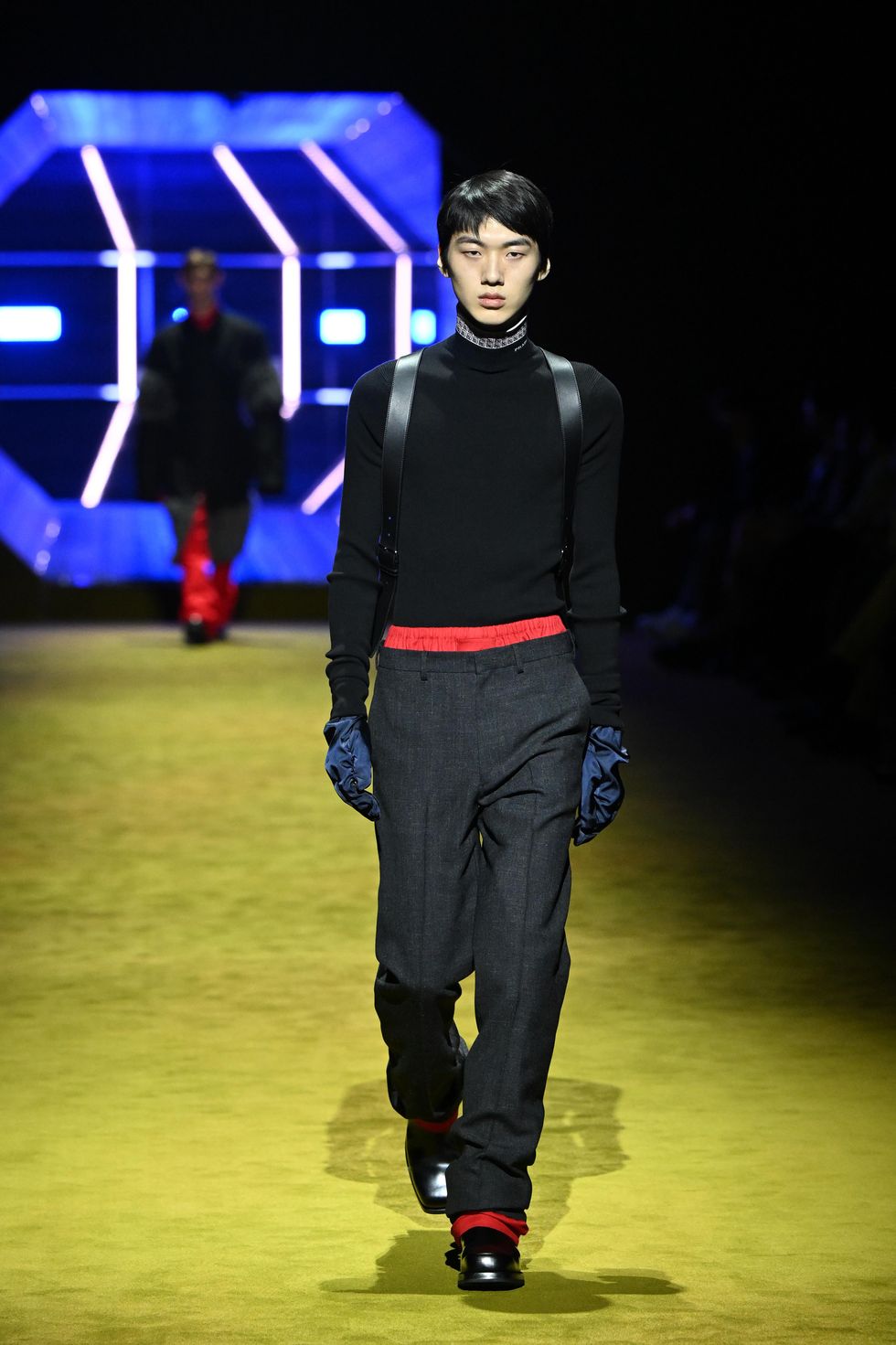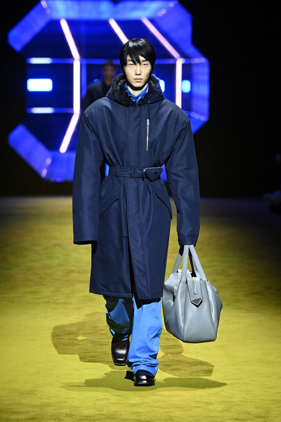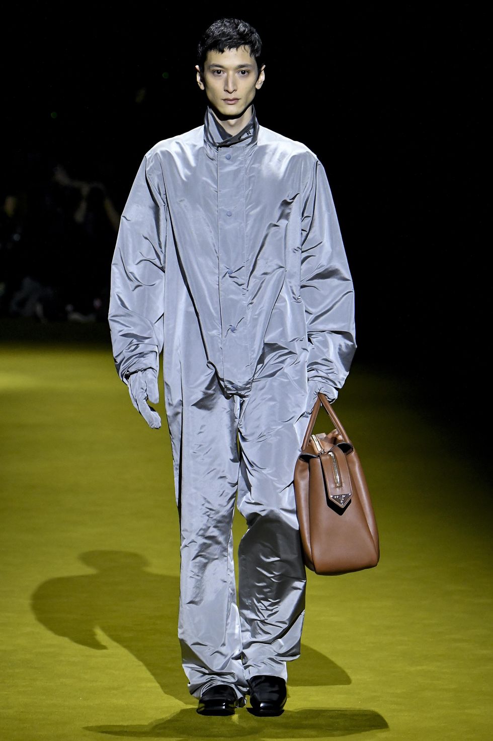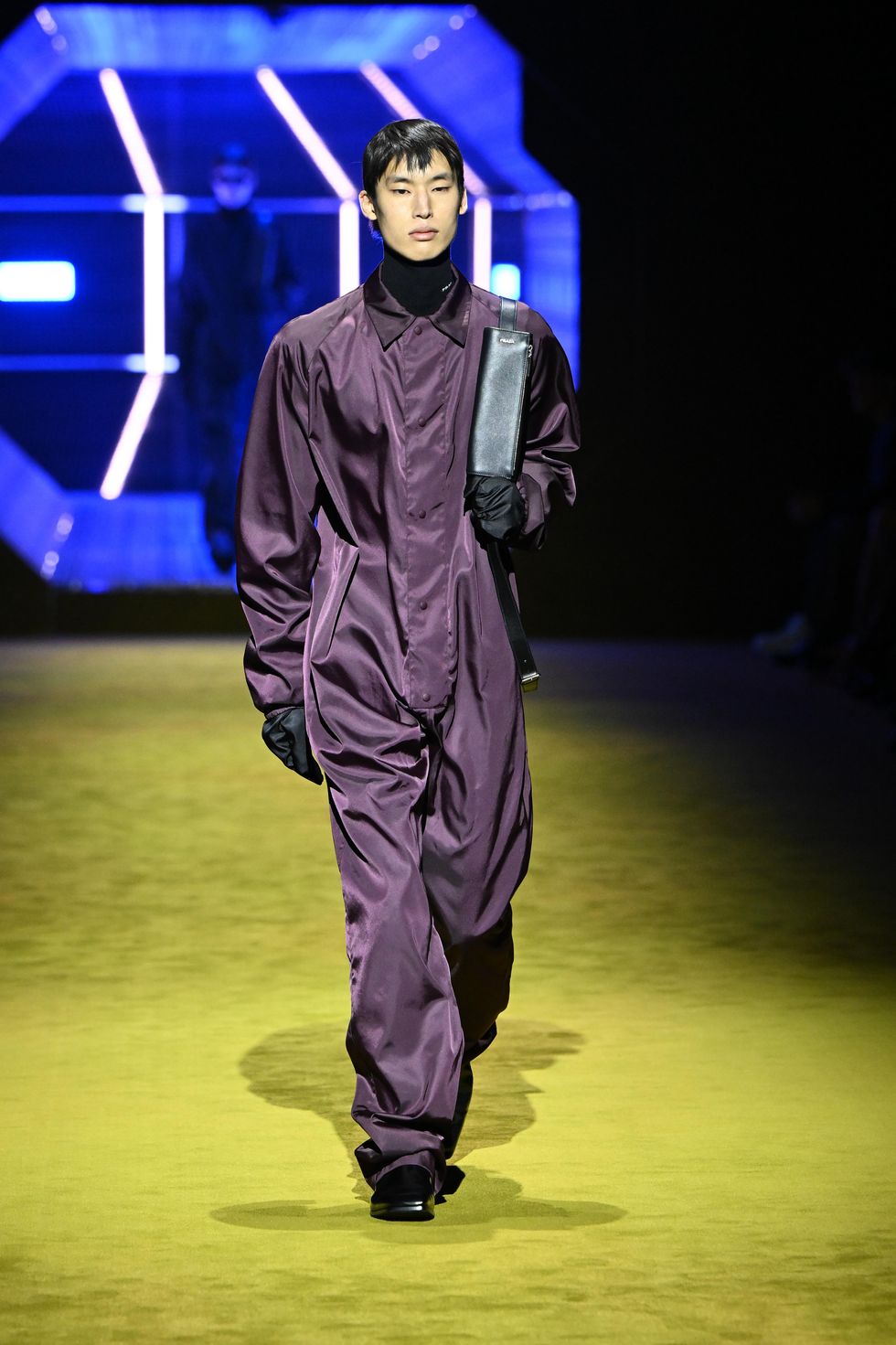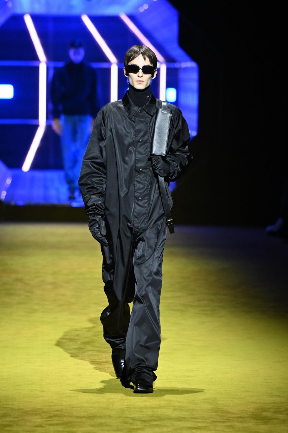 On the second year of Miuccia Prada and Raf Simons' collaboration as co-creative directors, they presented a collection called "Body of Work," which is essentially elevated, futuristic workwear that also echoes both Prada's and Simons' bodies of work as designers.