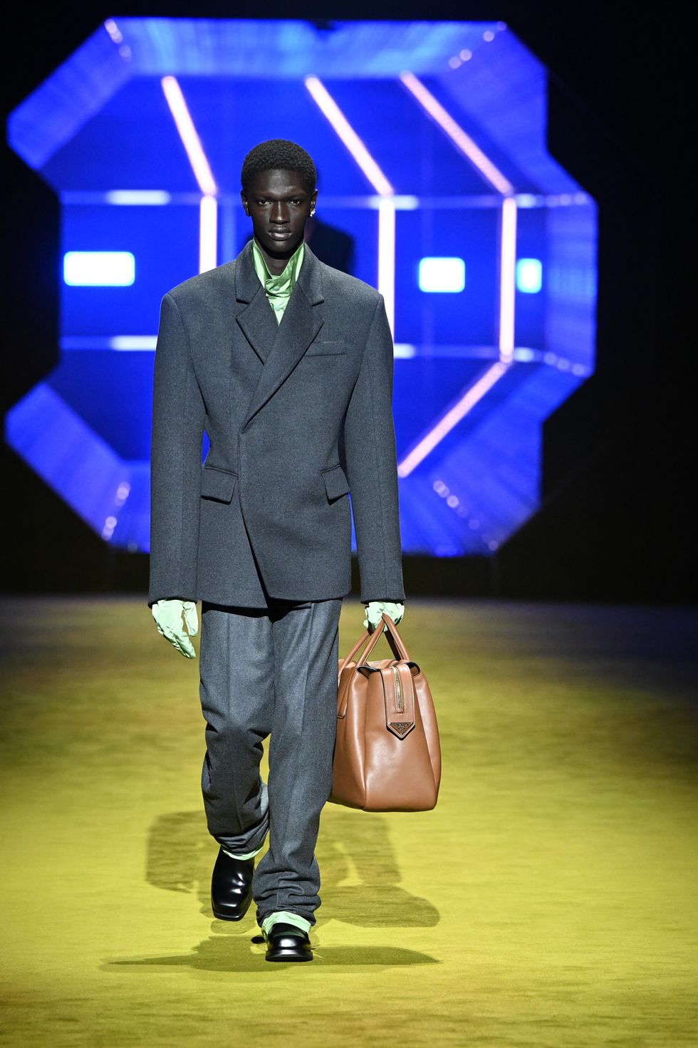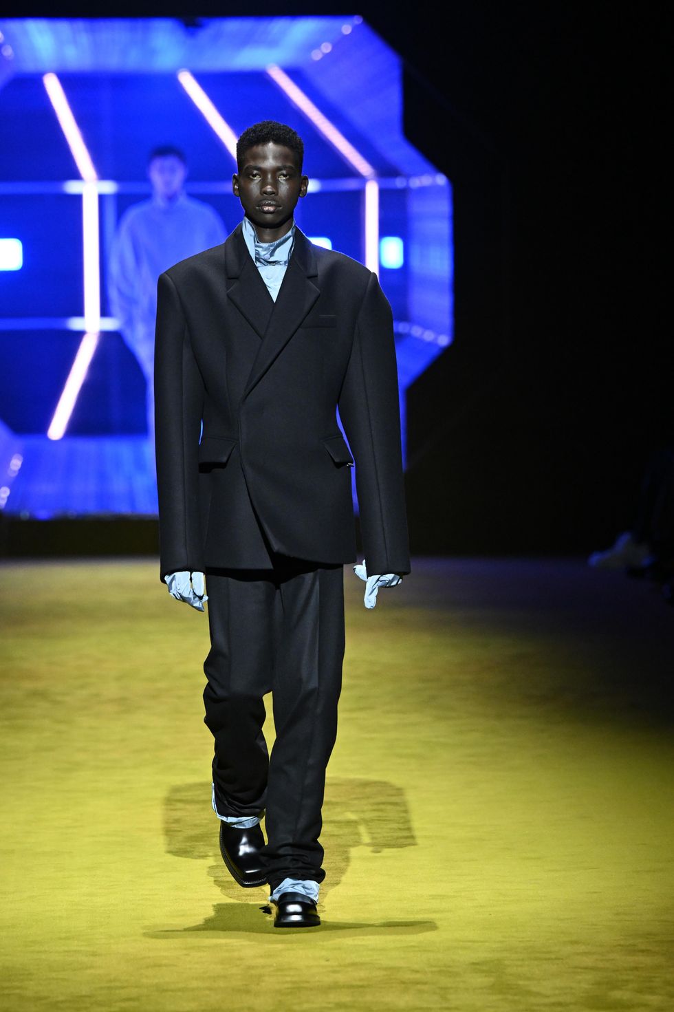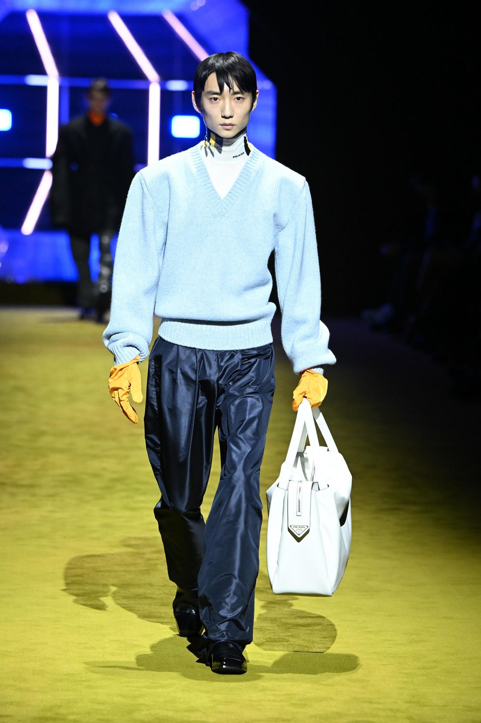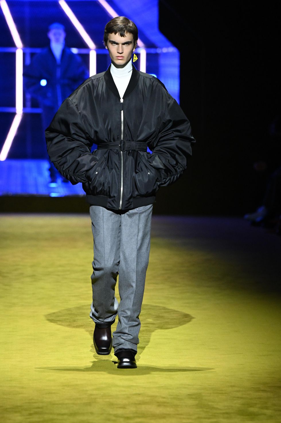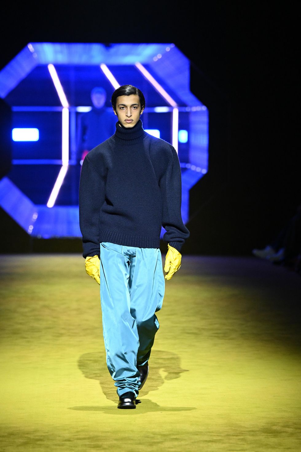 On the second year of Miuccia Prada and Raf Simons' collaboration as co-creative directors, they presented a collection called "Body of Work," which is essentially elevated, futuristic workwear that also echoes both Prada's and Simons' bodies of work as designers.