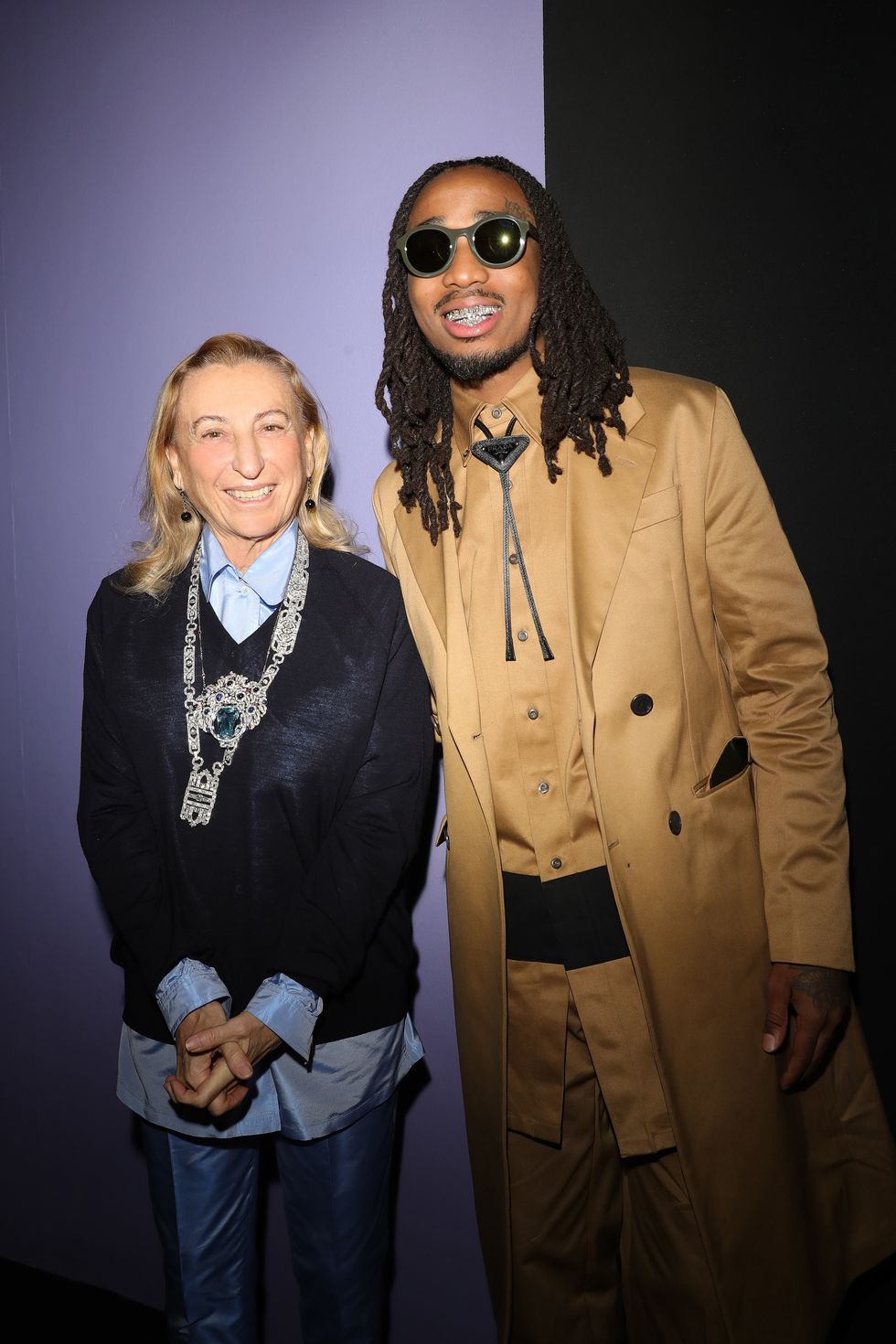 Much like the thinking behind the collection, the VIPs in the front row ran the gamut from rappers like Quavo (who took a marvelous photo with a beaming Mrs. Prada) to film director Luca Guadagnino to actor Dylan Sprouse and his boo, model Barbara Palvin, both of whom have been really making the rounds in Milan this week.