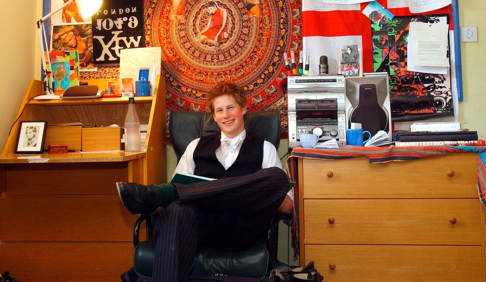 The Daily Mail recently dug up photos of the young prince in his college dorm room flanked by empty tea cups, a can of Axe deodorant (or Lynx as its known is the U.K. for copyright reasons), multiple bikini-clad pin-ups, and a framed photo of his late mother tenderly tucked away in a corner of his desk. You can almost smell the elite prep school frat party residue wafting through the dormitory halls.