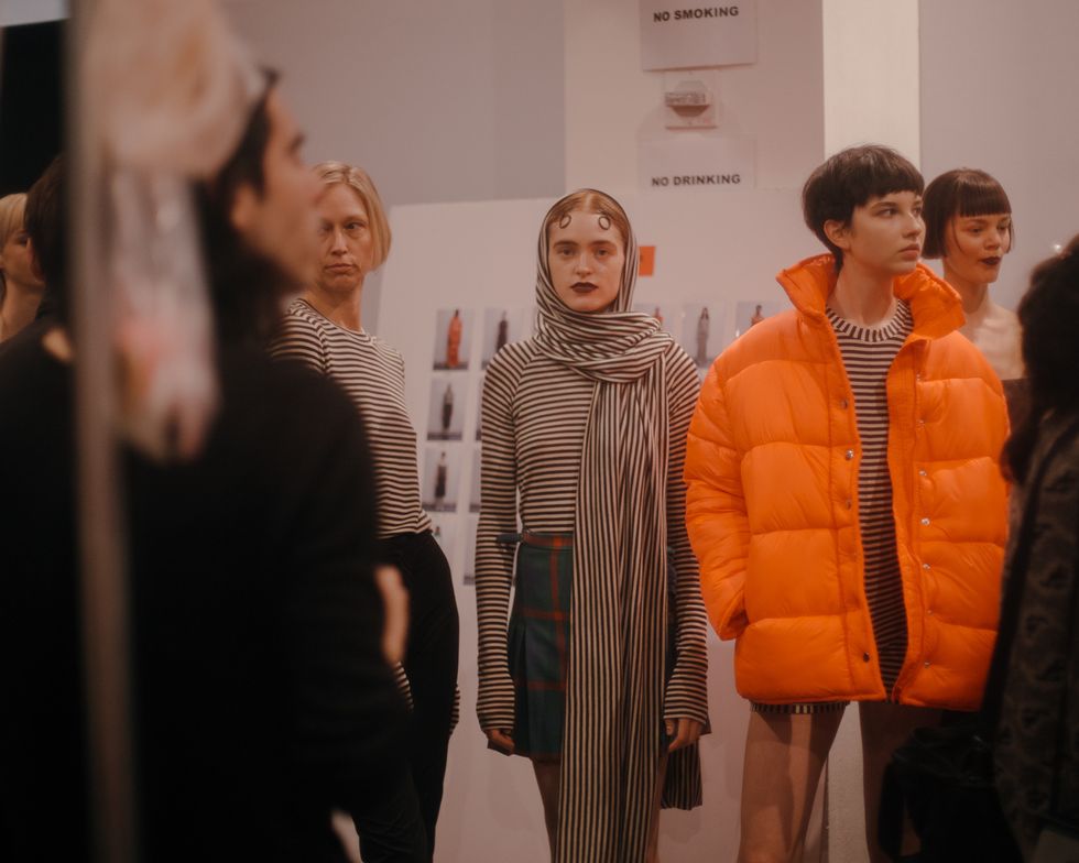 Chunky puffed jackets were definitely a defining silhouette within the collection. In shades of black and orange, the two pieces were styled as opposing aesthetics.