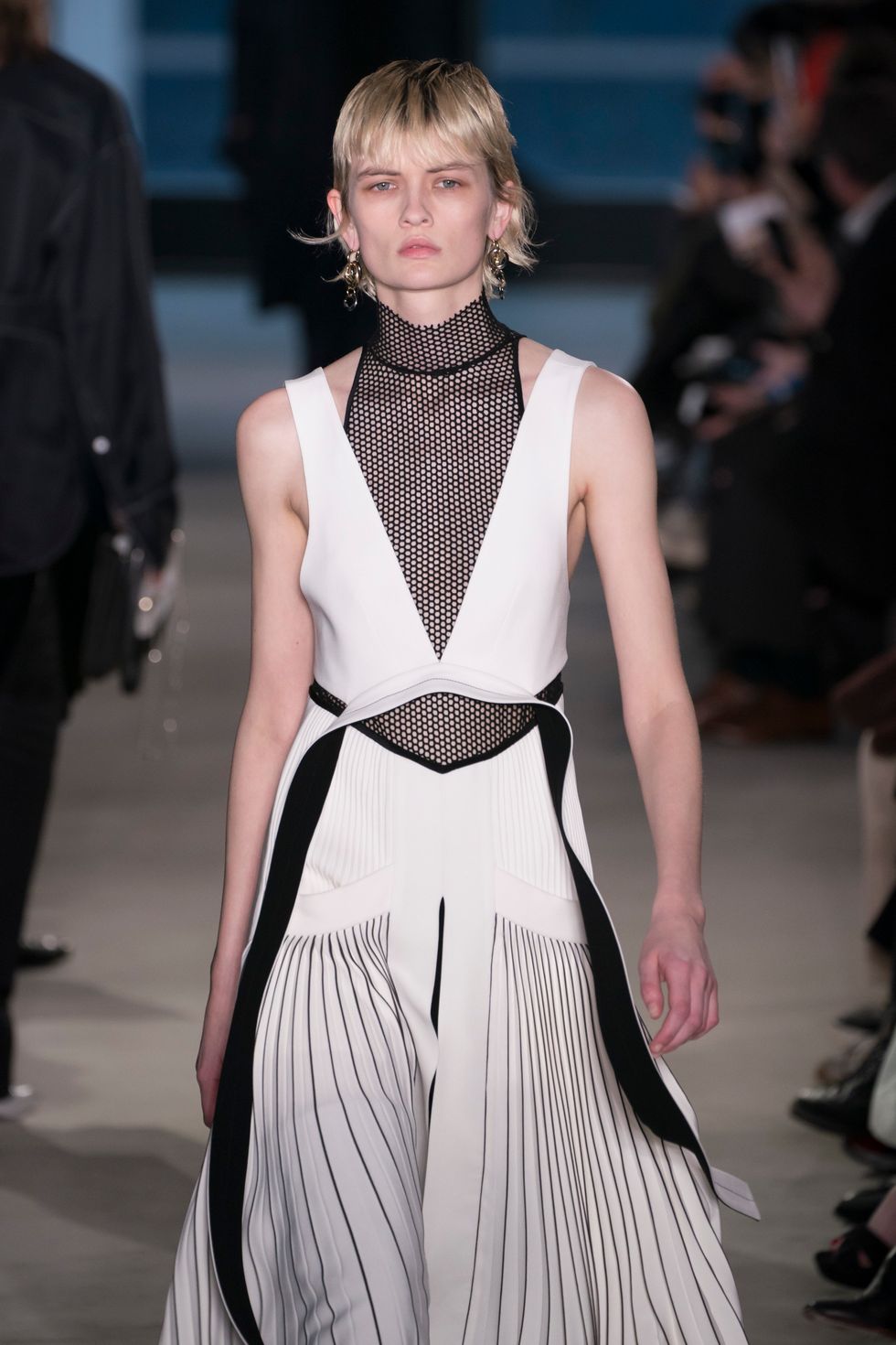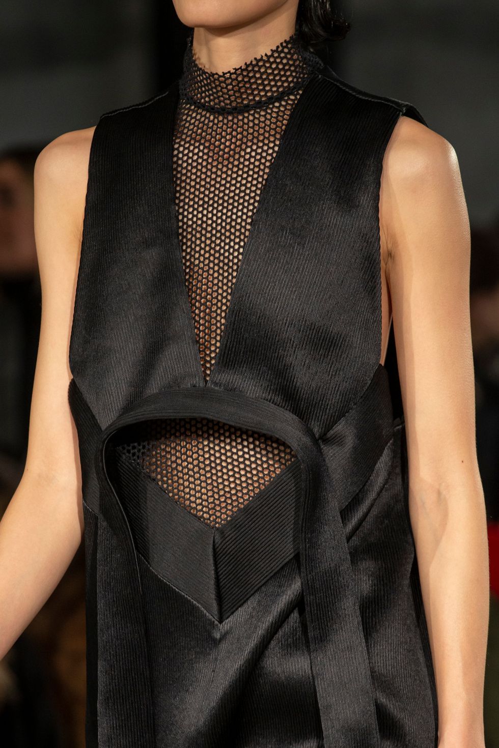 Following the trend of peekaboo cut outs, this season's pieces had netted, mesh-like fabrics layered around all the negative spaces in between.
