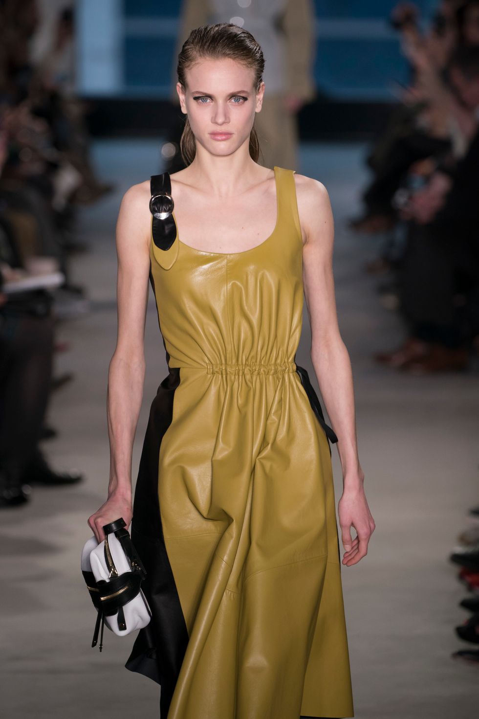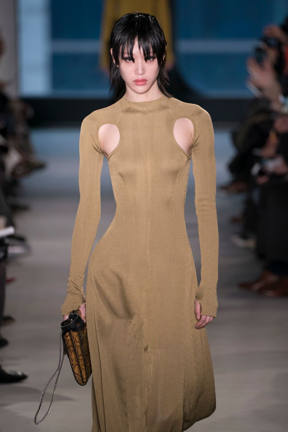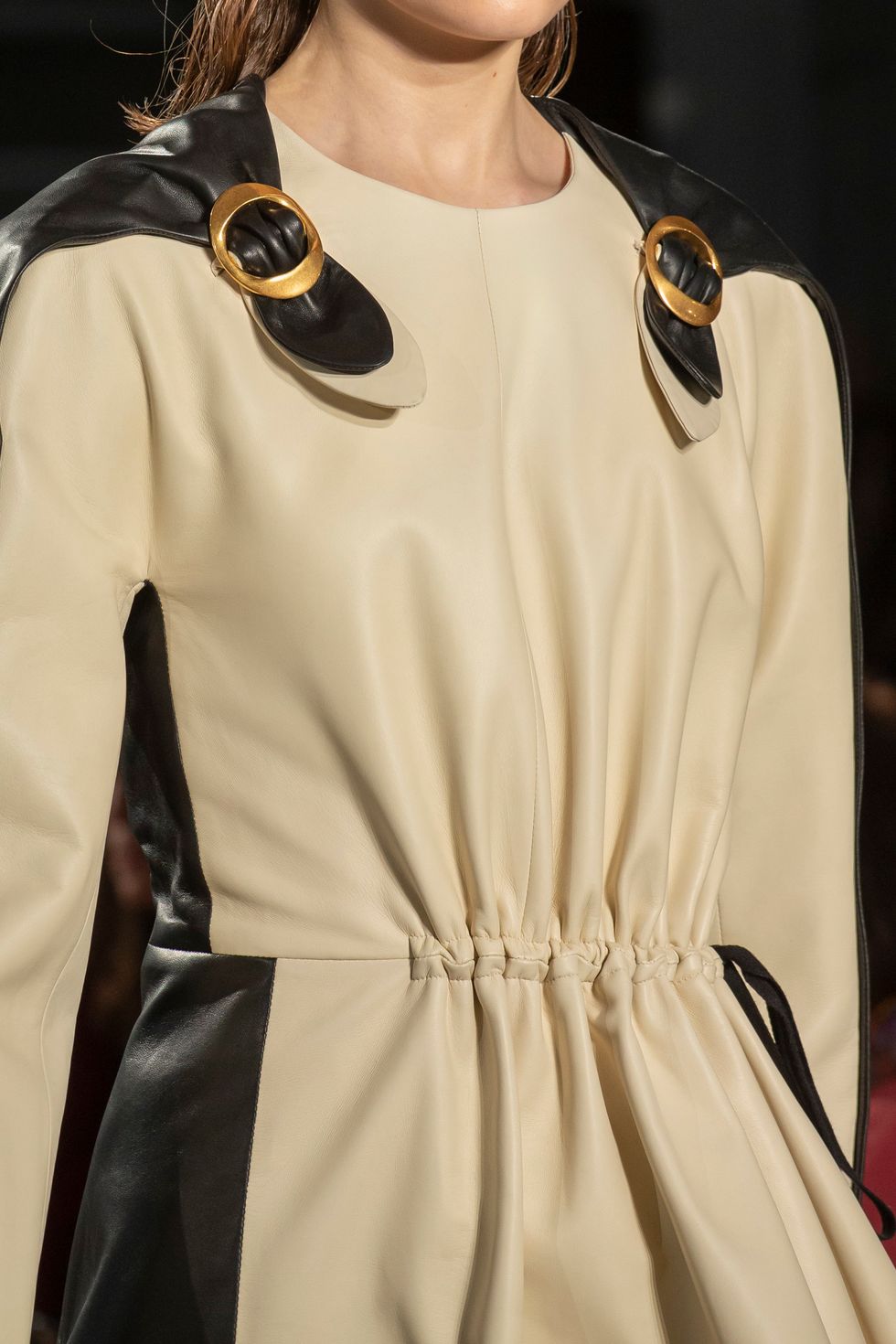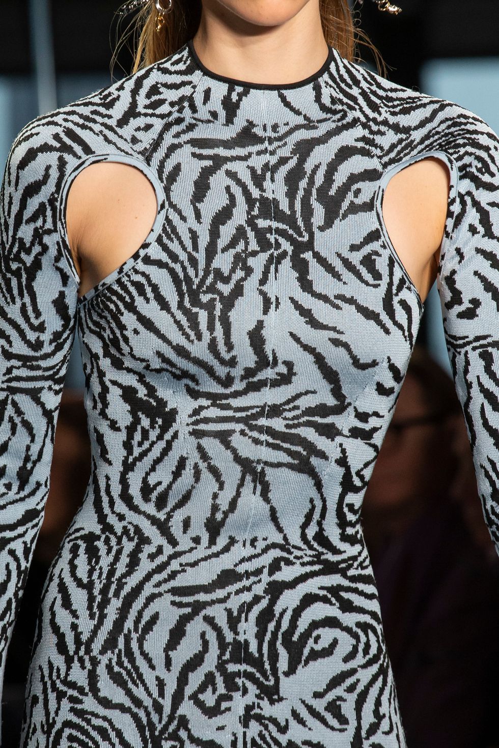 There was also a different kind of cool cut-out in this collection. Multiple dresses had small linear or circular holes right above the armpit. The unexpected technique created a very new silhouette.