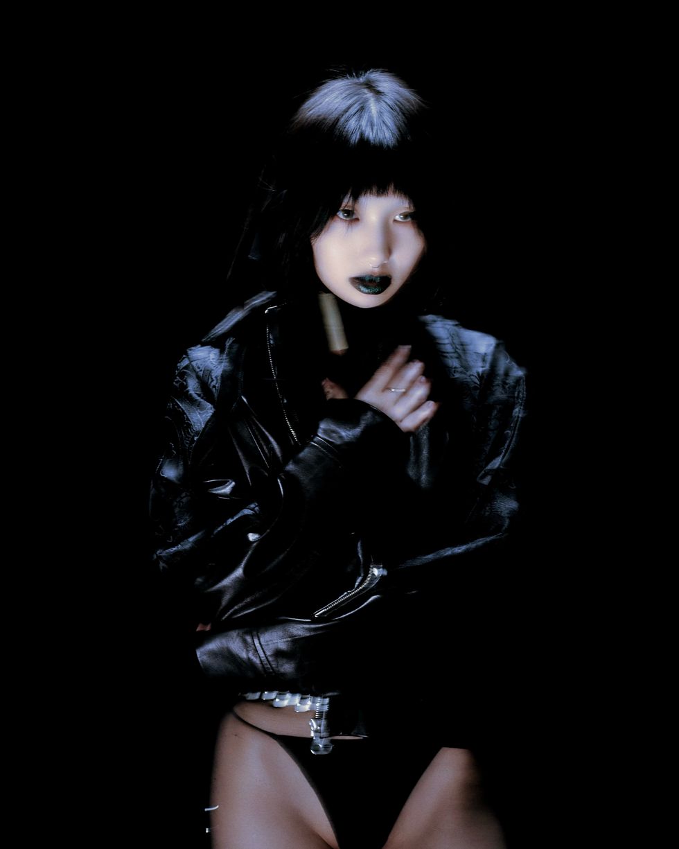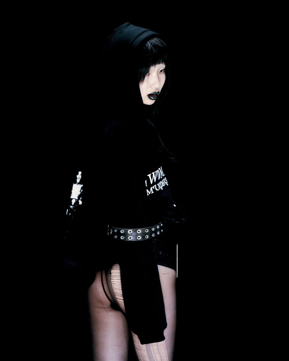 "The concept was to create a character bred from a state of confusion," Marks tells PAPER. "We wanted her to feel archival but futuristic, somber but void of emotion, real but completely fake. We wanted to place her in an abstract setting of entrapment and study, so her character feels like an experiment. We wanted to pose questions about the current direction of the human persona."