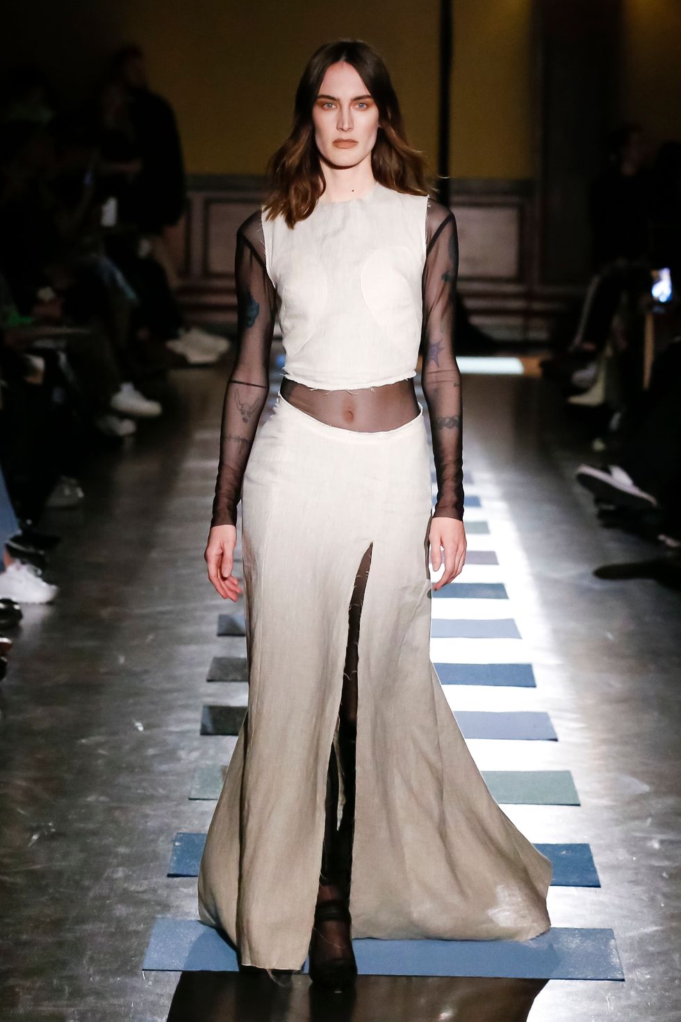 Moebius was known for his otherworldly Western-inspired comics and design work on sci-fi classics like Alien and The Fifth Element. Mark, an artist and science fiction fan, initially encountered his work while watching the famed documentary about Alejandro Jodorowsky's never-made version of Dune. "I thought it was so beautiful," she told me backstage after the show. "And I've always loved graphic novels."