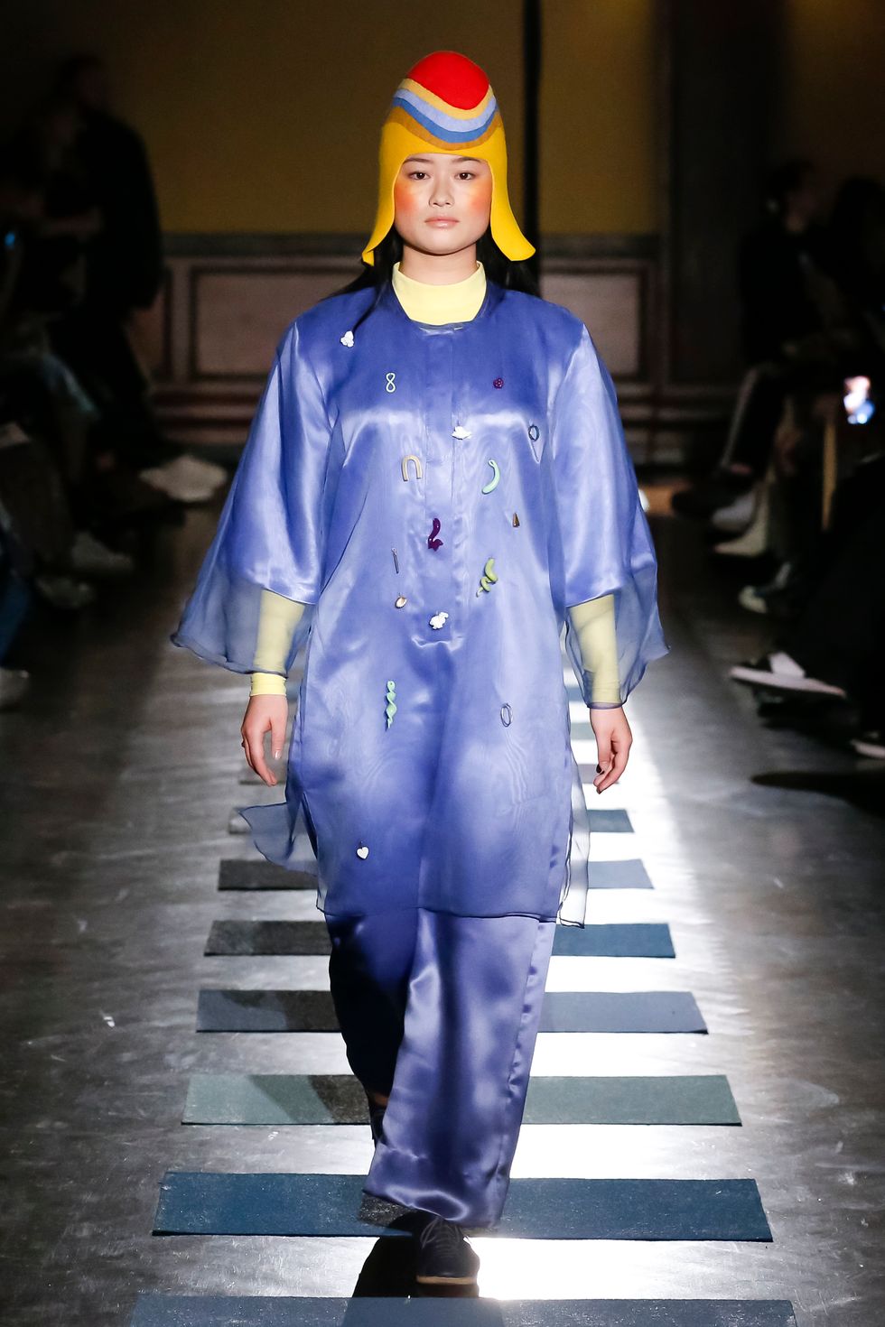 They were right. The show was weird. Weird in a great way! A fun and lovely way! Fashion week always needs more weirdness. The schedule in New York is so bare and empty this year — we need weirdness to get through it. The weird stuff is the only thing that makes it fun to see a fashion show in real life (also brands with gobs and gobs of money who make objects of such breathtaking luxury that you're tempted to reach out and touch them, i.e. The Row and various shows in Milan and Paris. But they're rare in New York these days!). Without the odd and unexpected, you may as well stay home and just look at the photos online. So thank God for weirdos like Puppets and Puppets designers Carly Mark and Ayla Argentina, who really make leaving the house in rainy Joker weather worth it.