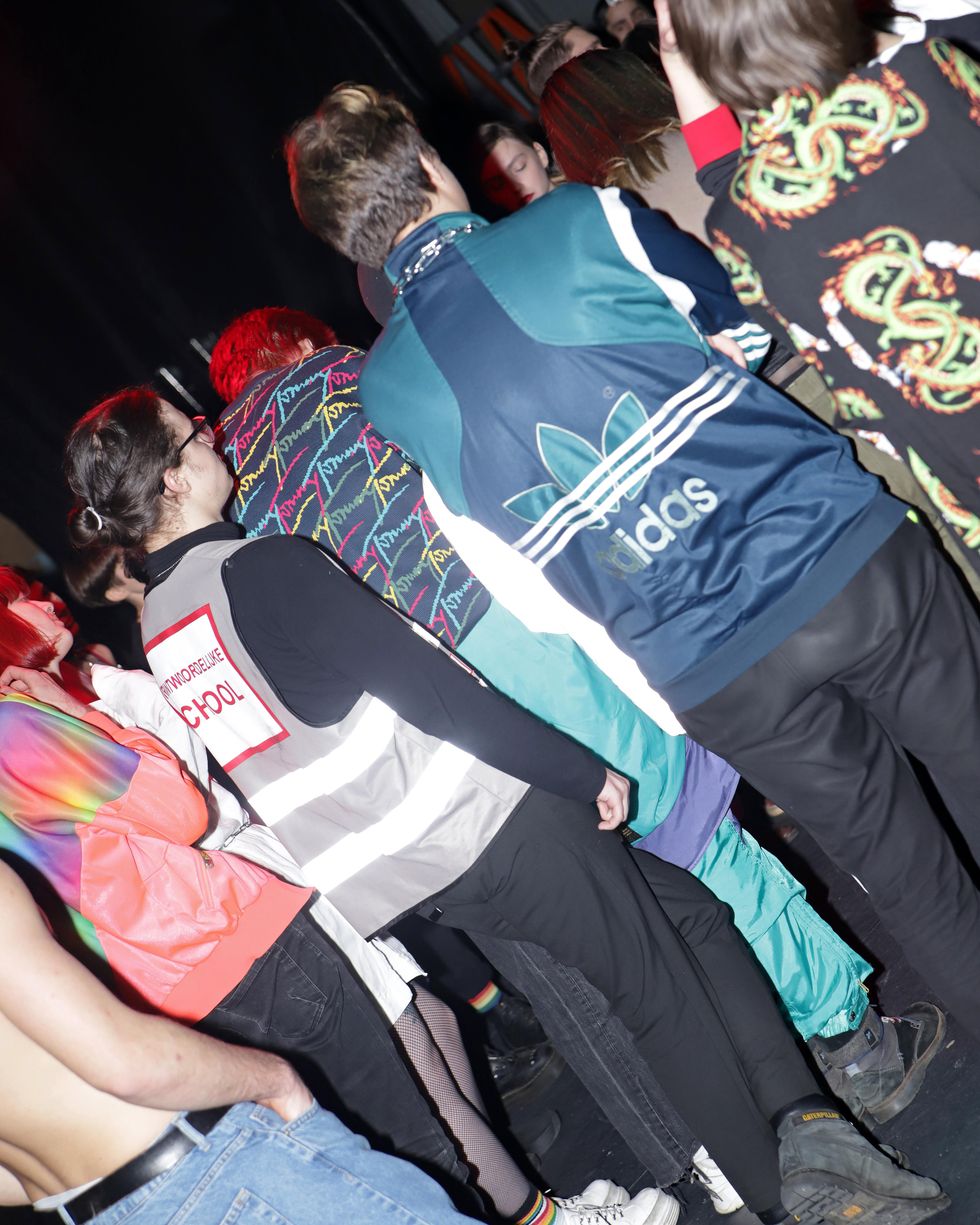 The band gave PAPER these exclusive behind-the-scenes photos from the video shoot, which took place a year ago in St. Petersburg and features more than 200 LGBTQ+, feminist, anti-authoritarian Russian activists. And yes, there was a police raid during filming, so the clip ended up being cobbled together from what was shot before the cops literally cut their electricity and blocked off the roads around the studio. Twelve activists, including Pussy Riot's Nadya Tolokonnnikova, were arrested after being accused of creating "gay propaganda" and detained for five hours.