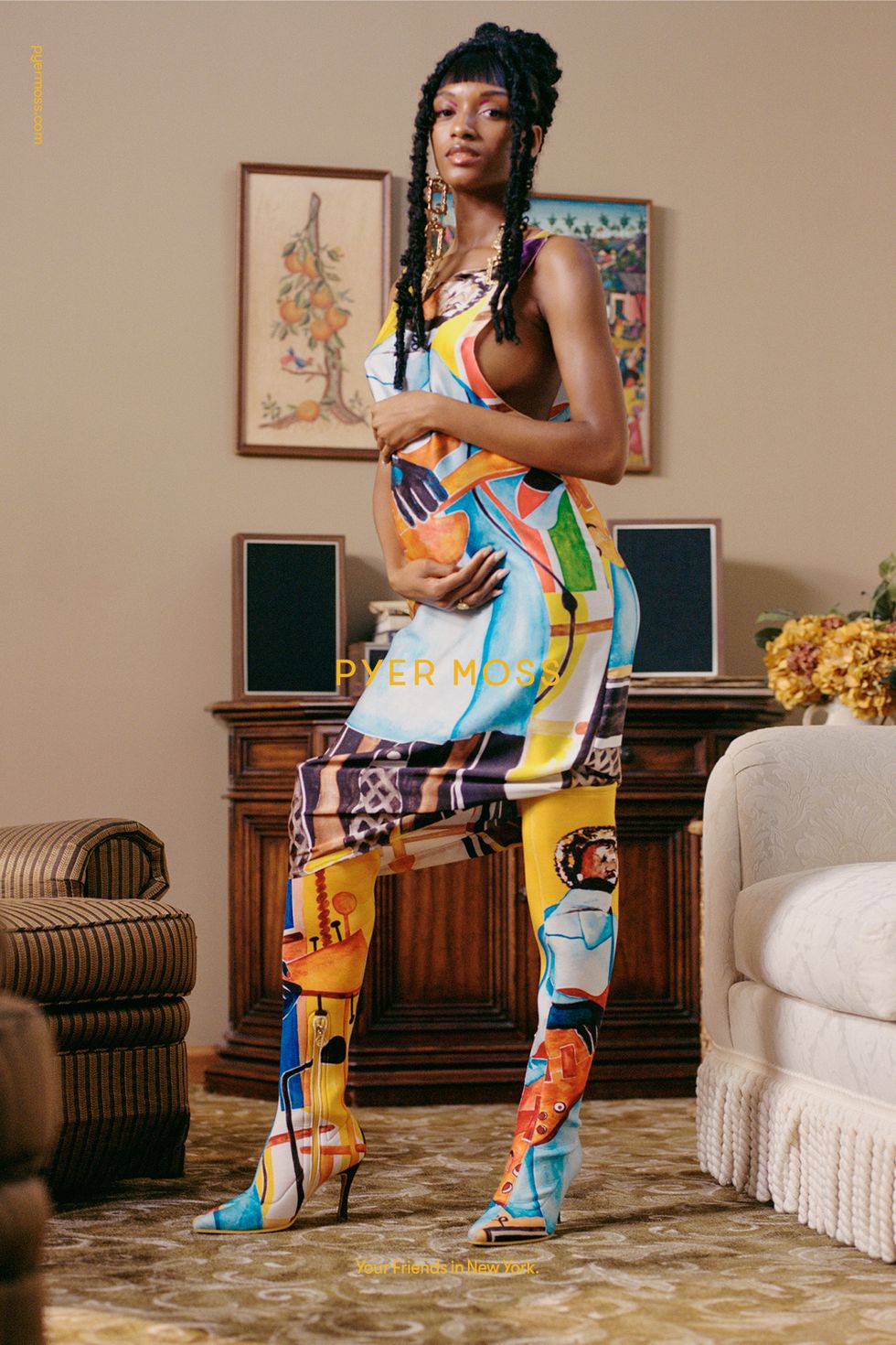 Among the subjects in front of the camera are Katiria Powell, who was captured cradling her baby bump in a Pyer Moss look featuring artwork by exonerated artist Richard Phillips, and Jalen Steward. ("My Blackness is celebratory. Creating art that represents us is where I want my focus to be," he said.)