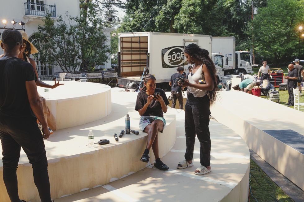 The weekend prior, we knew that on Thursday it was likely there would be some rain but we were thinking a light sprinkle. I don't know if you came to Pyer Moss' "Weeksville" show a couple of years ago but there it just drizzled a little bit and it was beautiful. It added to the show. So we're thinking, Okay, we're going to prepare for a little bit of rain. So we had the tenting company come out and we got tents up for anyone that would be standing and we ordered a bunch of umbrellas, we ordered ponchos. That all happened Monday.