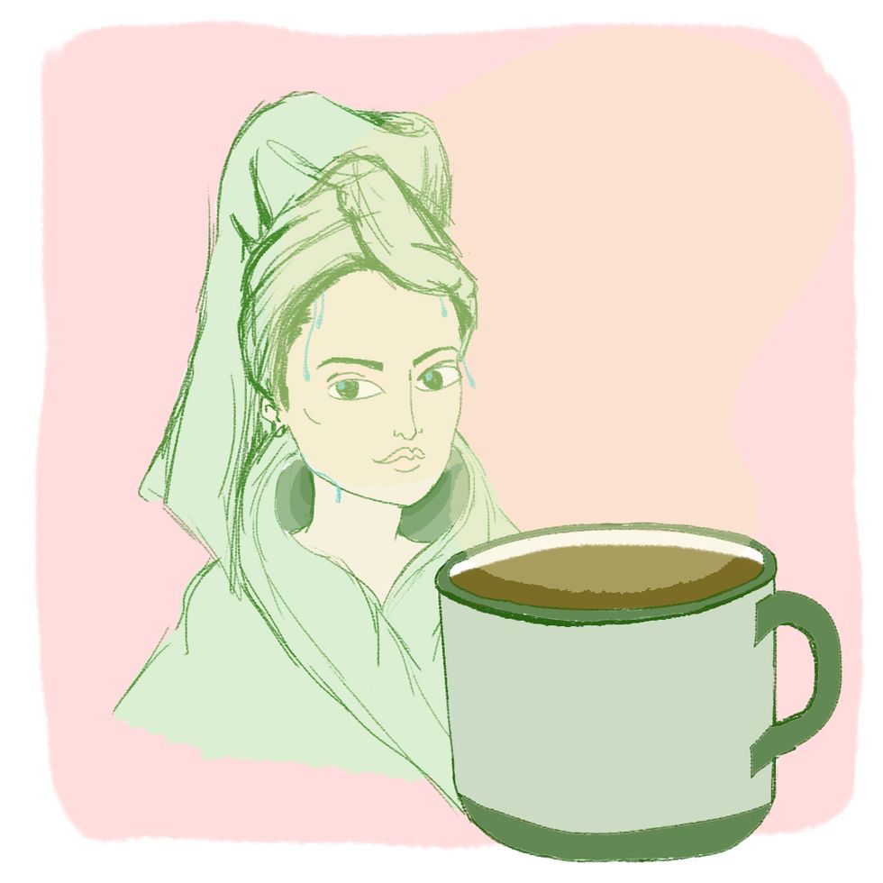 Fiance gives me coffee and I become slightly less grumpy. I drink just enough coffee that I sweat profusely but not so much that I have heart palpitations. Once my eye starts to twitch I know we've hit the sweet spot (anywhere from two to 187 cups).