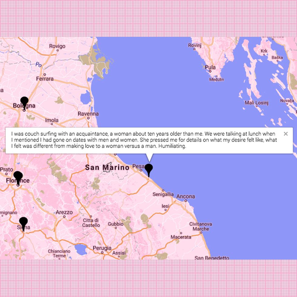 For everyone who missed its original incarnation, the site is an interactive means of documenting queer histories, crowdsourced by anonymous users who drop pins on a map and leave personal accounts with each. Recovered from the pre-spam life (and relaunching with the new-and-improved site) is a trove of intimate stories about coming out, of loss and heartbreak, about surviving homophobia, of trans visibility, epiphanies of sexuality, and even wistful missed connections.