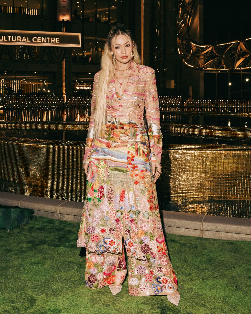 Gigi Hadid wearing Rahul Mishra in Mumbai