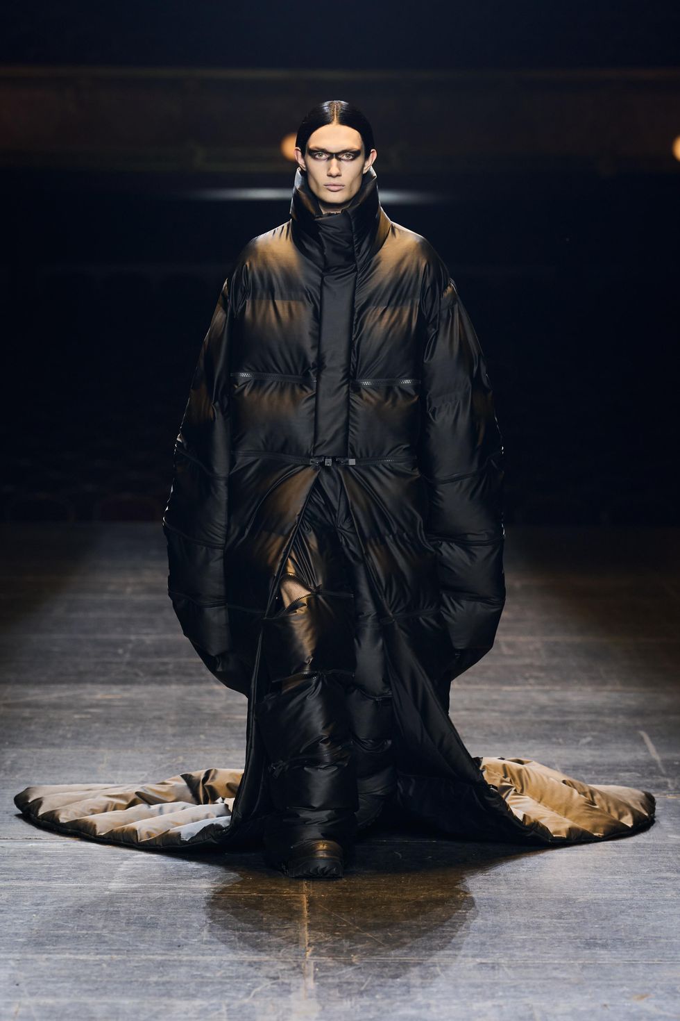 As soon as the curtains lifted at Rains' latest runway show in Paris, a procession of models dressed like powerful goth creatures emerged, made all the more dramatic by the splendor of a gilded theater in the backdrop.