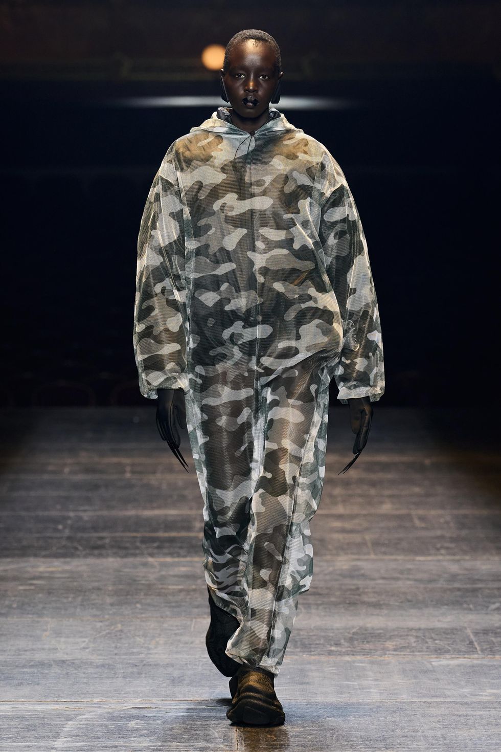 Another standout was the footwear, a collaboration with 3-D-printed sneaker company Zellerfeld based in Germany. Rains confirmed they have plans to produce the sculptural, artificial shoes.