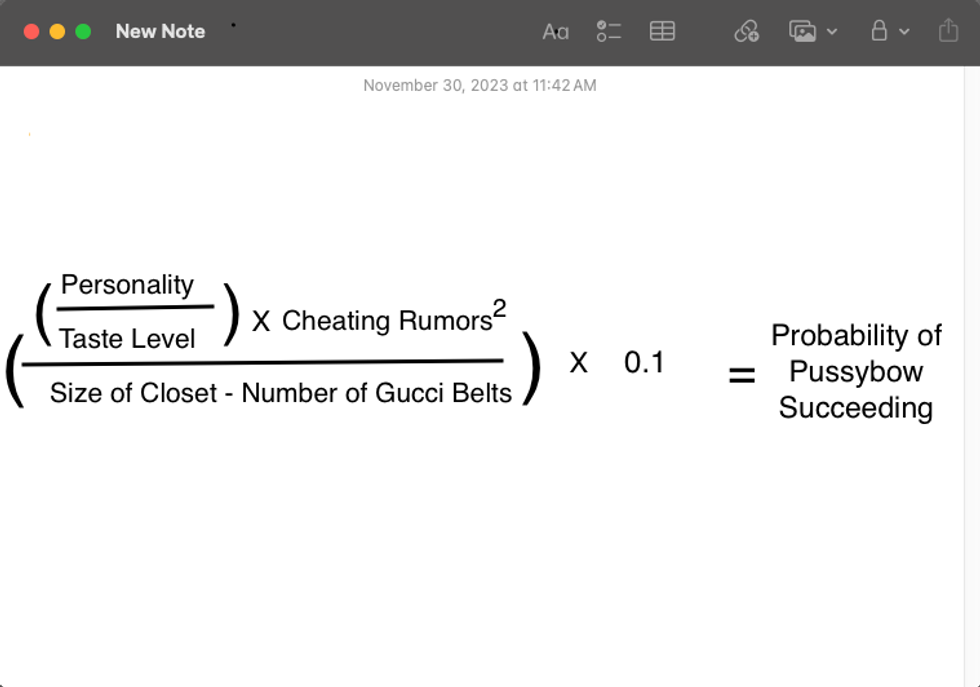 Statement bows are a fun way to fuss up an outfit — or Housewife — with very little personality. Sadly, there’s a math equation about the ratio of bow to personality that must be strictly adhered to, lest the whole thing explode in everyone’s faces. I’ve roughly outlined it below: