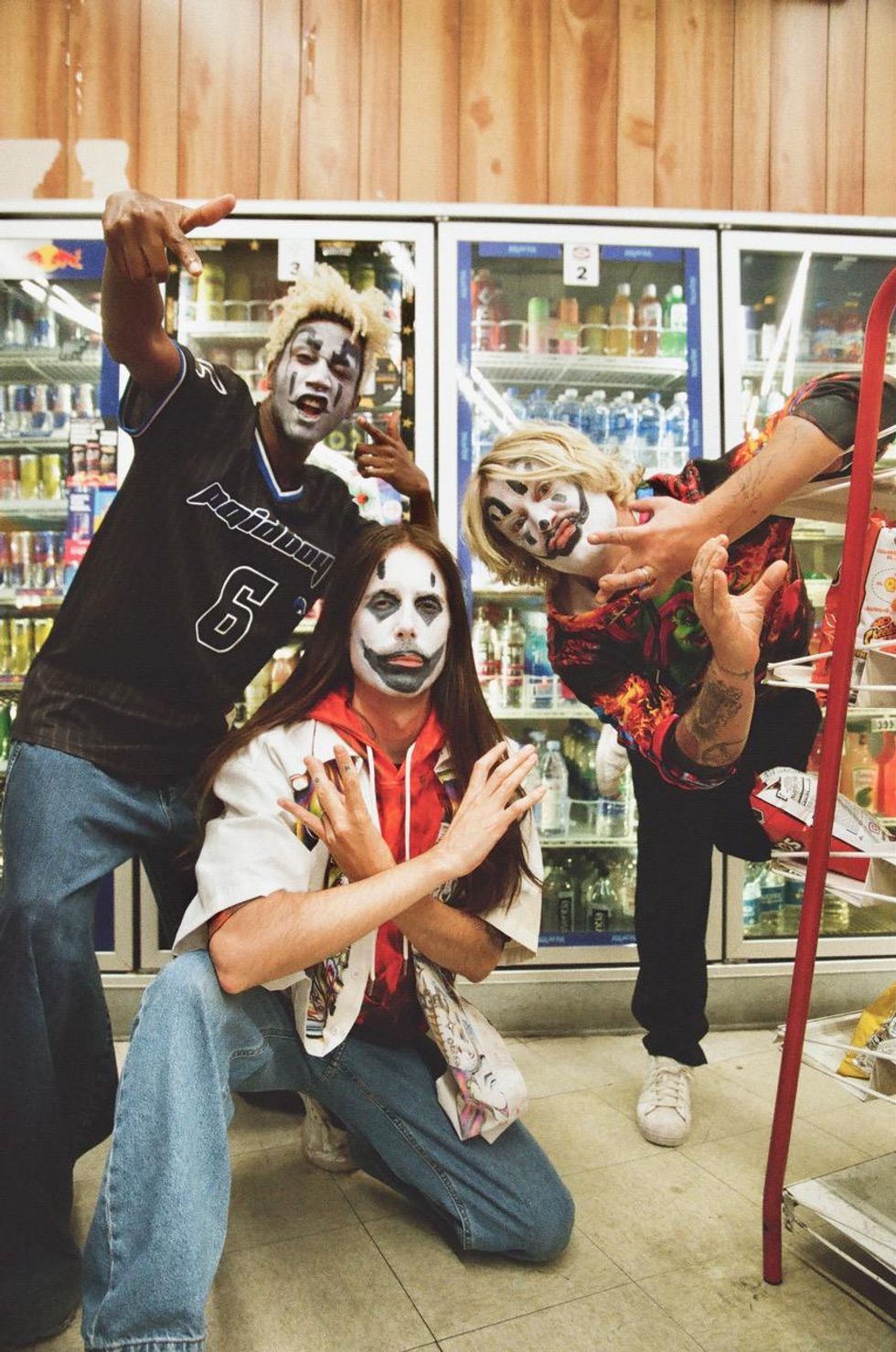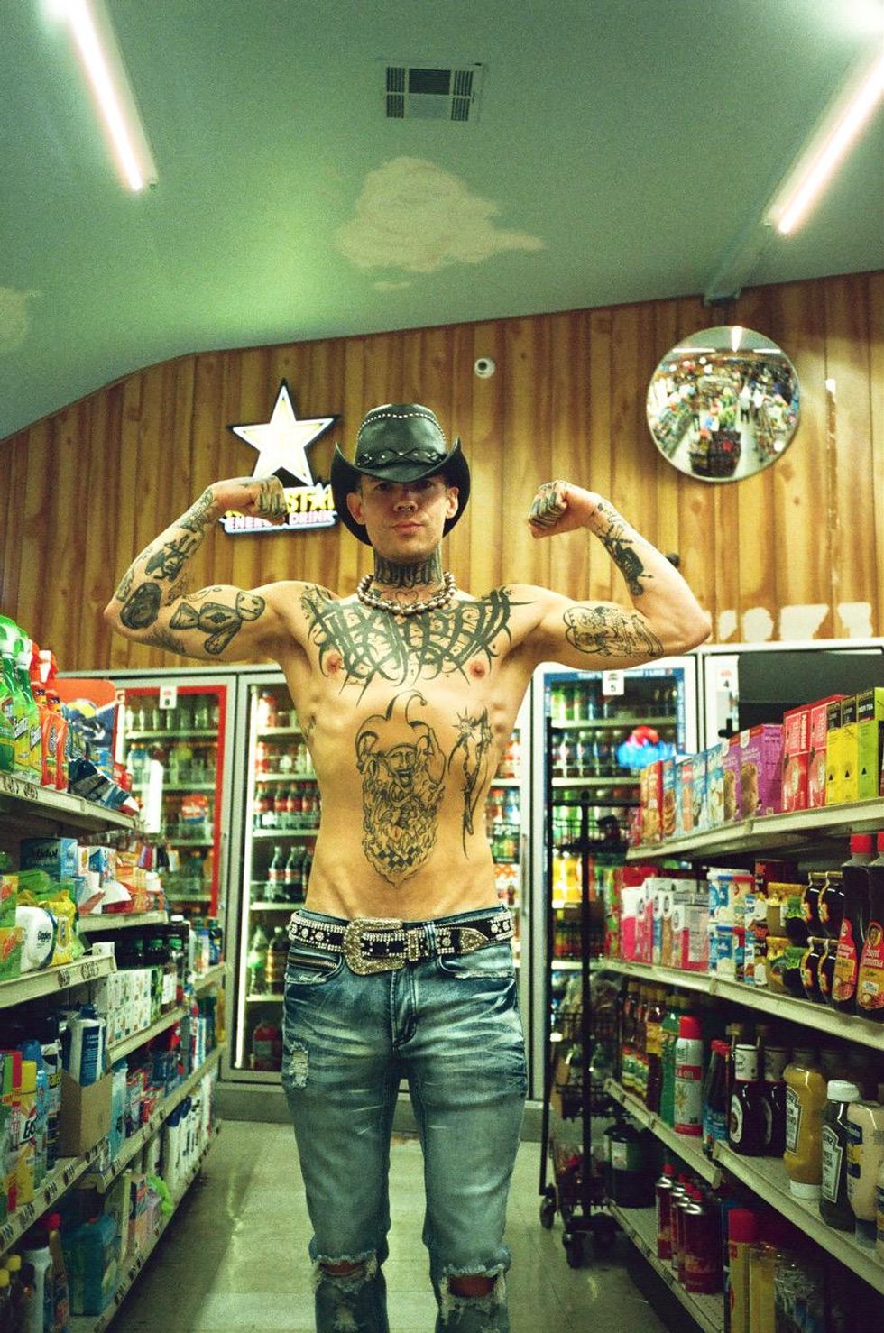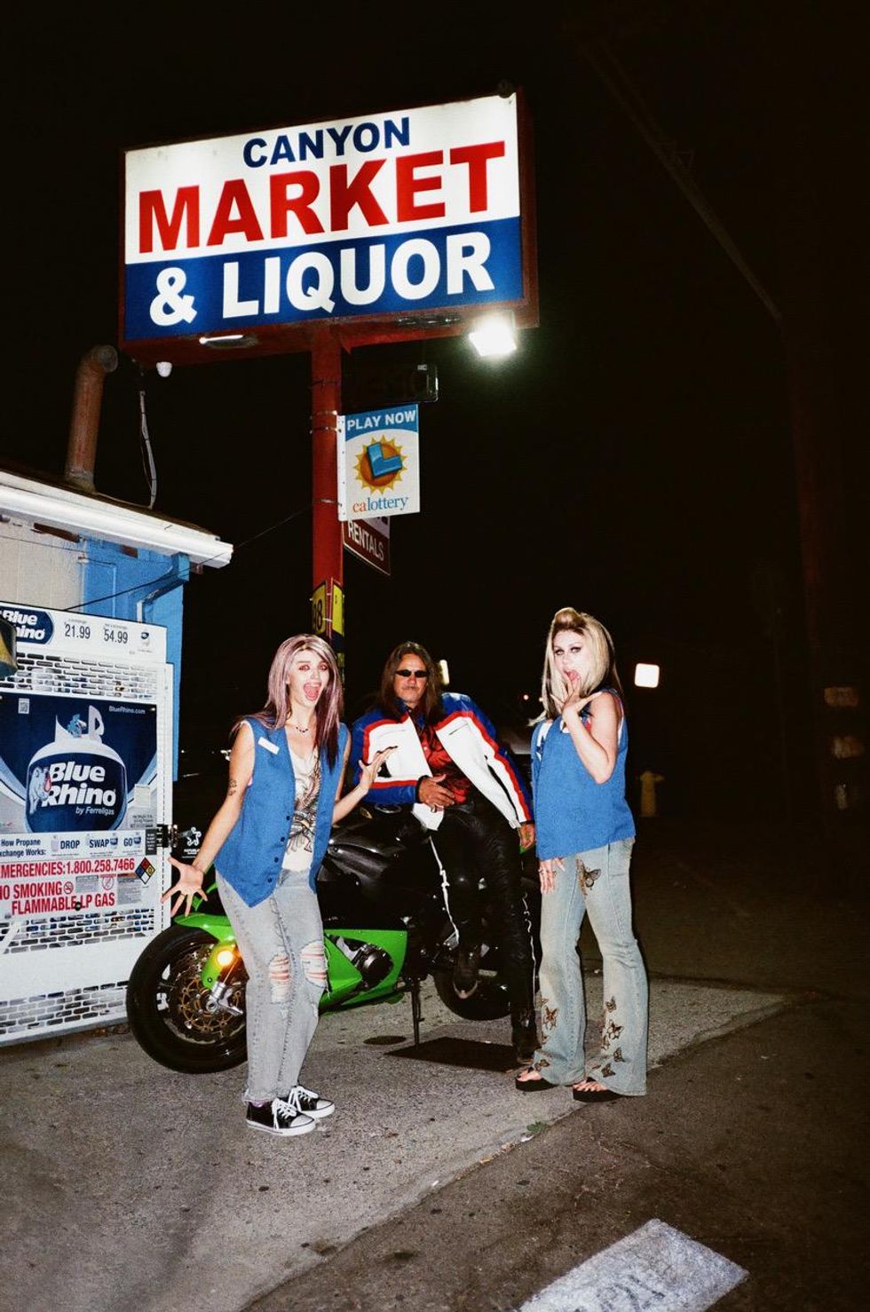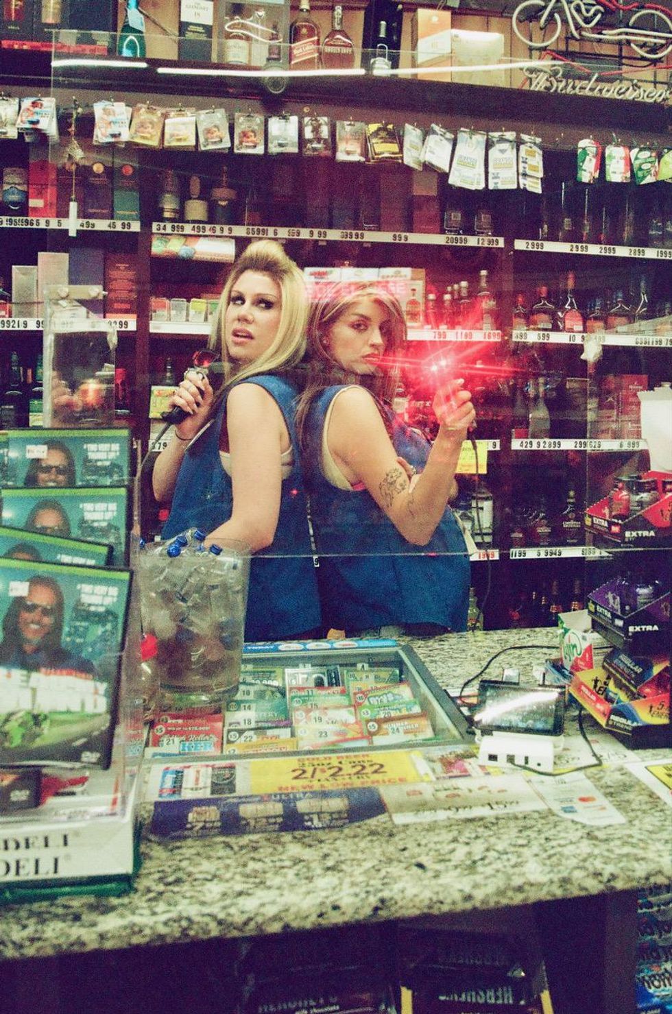 Everything takes place at a lonely gas station in the dead of night, where Black and Slayyyter work together — complete with trashy highlights, thin brows and bump-its, all reminiscent of Slayyyter's extremely online mixtape era. They're greeted by annoying customers, er cameos, like Lil Texas and Lil Mariko, fiending for cigarettes or late-night munchies, before the real-life motorcyclist Yuri Barrigan drops in to much fanfare.