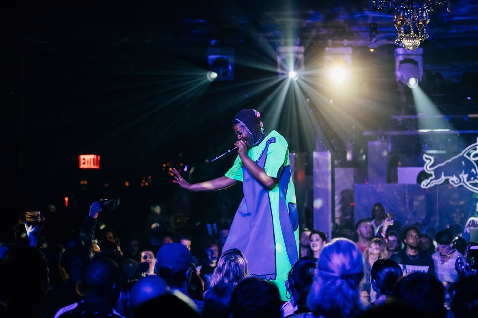 Tierra Whack turned Rockefeller Center's Rainbow Room into Whack World for a set that was a bit more intimate than other Red Bull presentations. Performing on a round stage that gave her equal view to every fan in the room, she sang the one-minute tunes that made her famous, plus her newer songs, "Only Child" and "Wasteland," to name a few. The cute, surreal monsters from her Coachella set (remember Foster's Home For Imaginary Friends?) were positioned near the stage, the beats spun by DJ Osho were bone-rattling, and Whack's on-stage charisma was undeniable. Not to mention, the entire, well-organized show was probably no more than 45 minutes, which in my mind, is a game-changer, considering how many artists start hours later than expected then give you two-and-a-half hours plus 78 encores because one person asked. This is a show I would've loved an encore for.