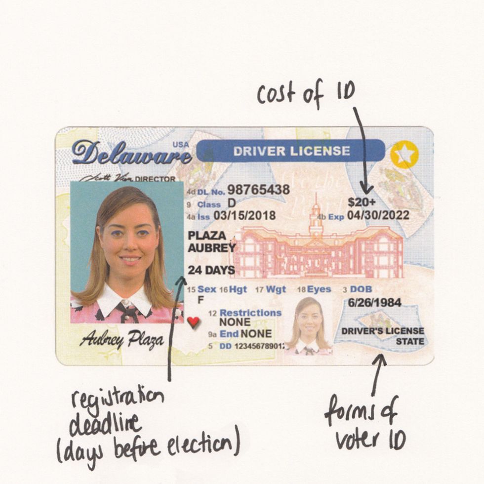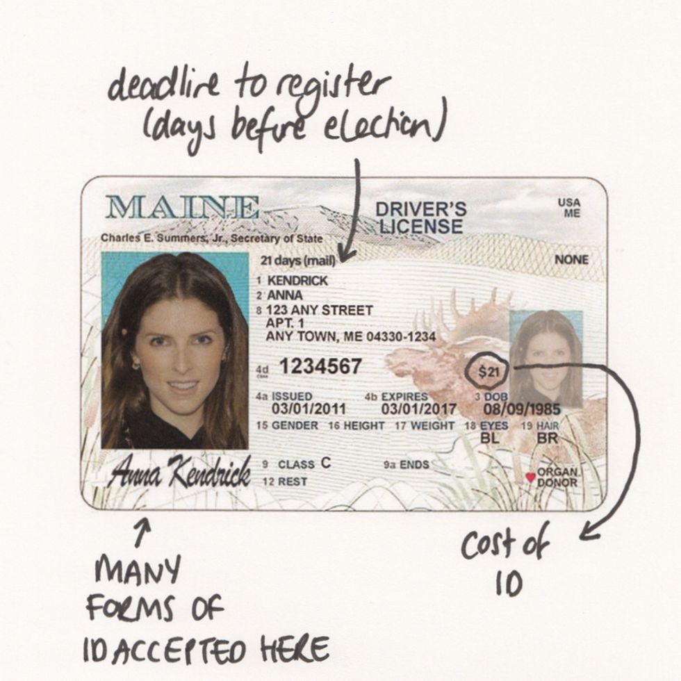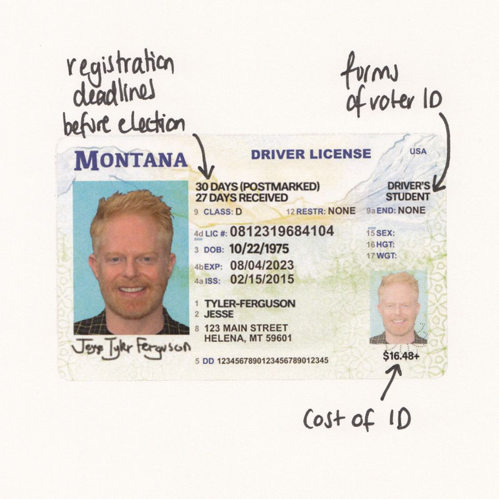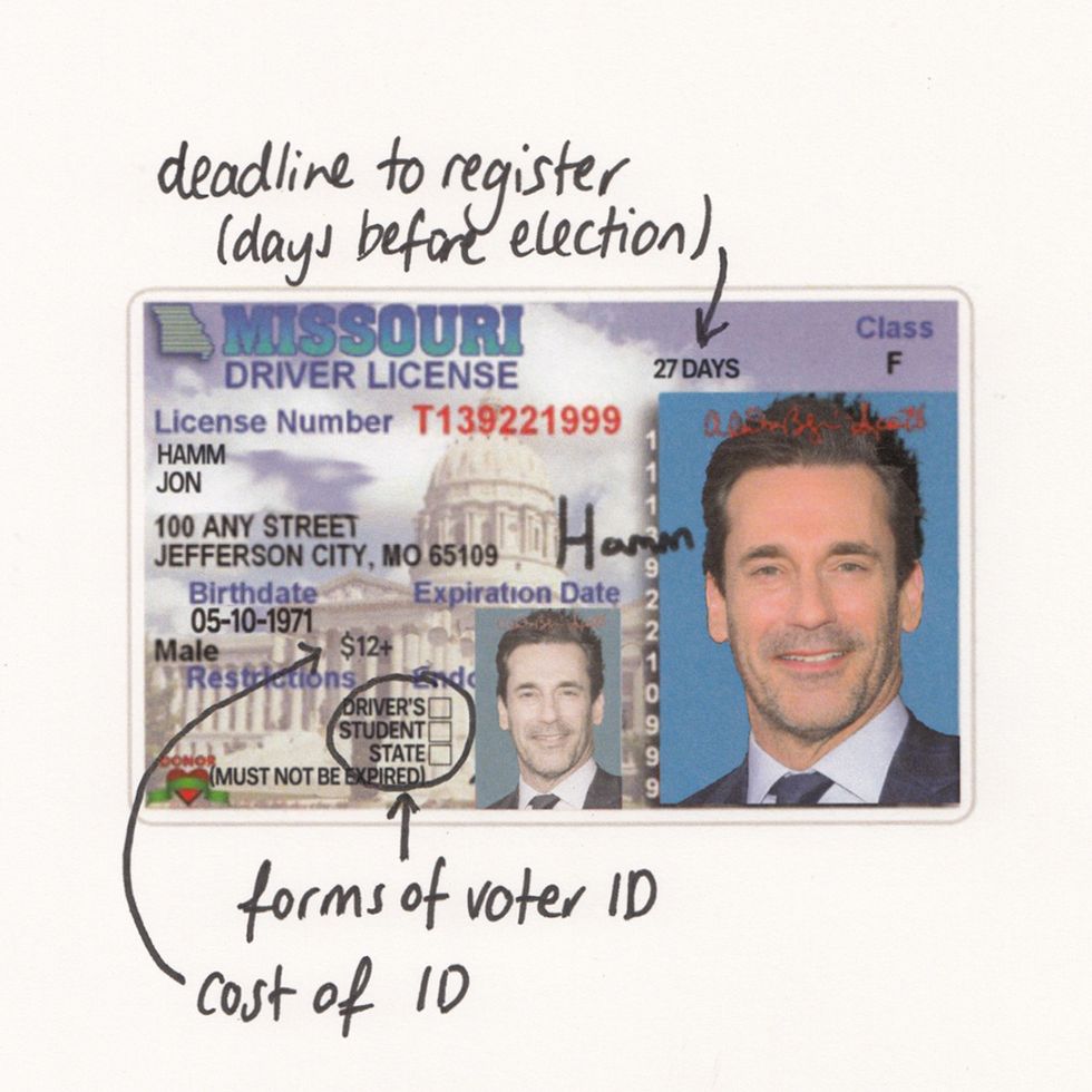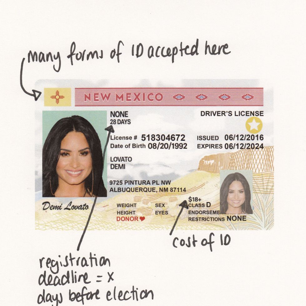 To find out, scroll down to your state (or hit Ctrl+F) for information on how, where and when to register to vote. A link to get more information for your state is below each ID card, created in partnership with Vote.org: