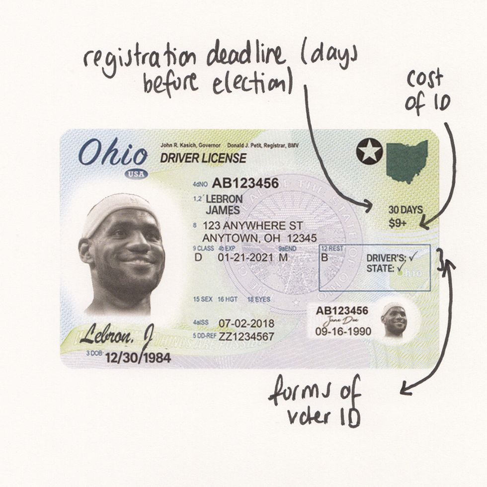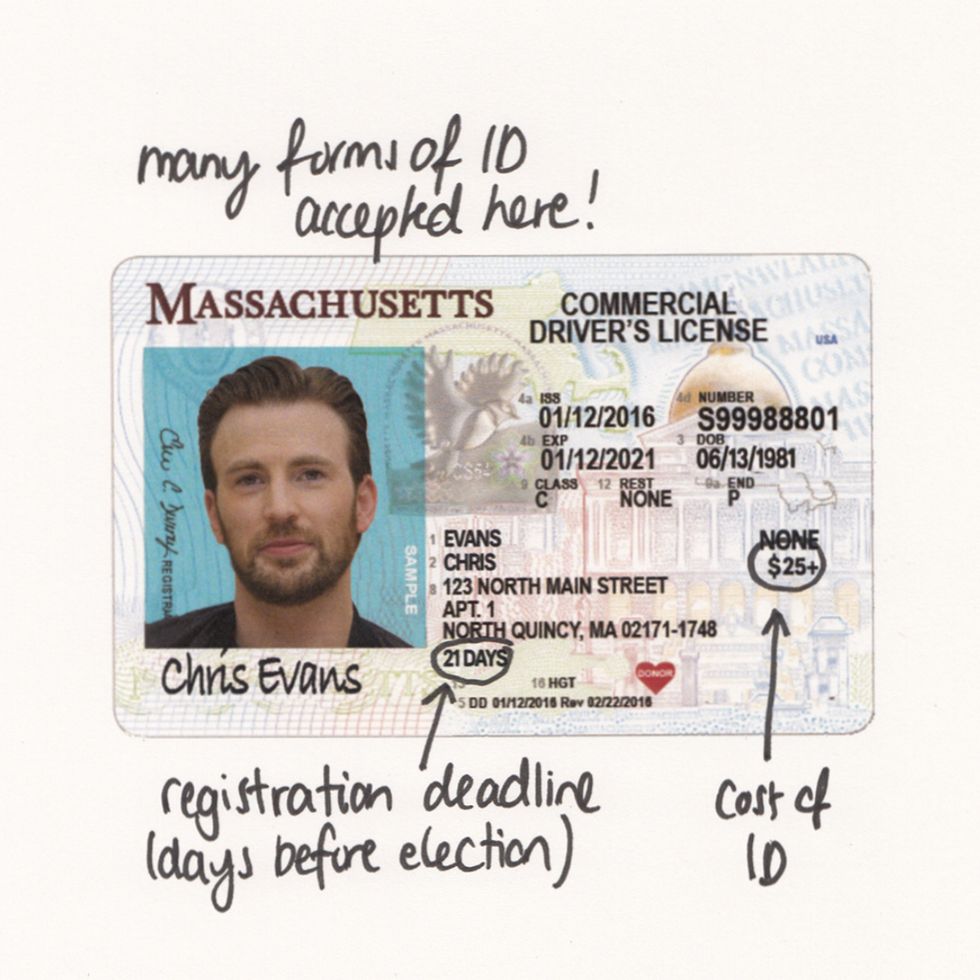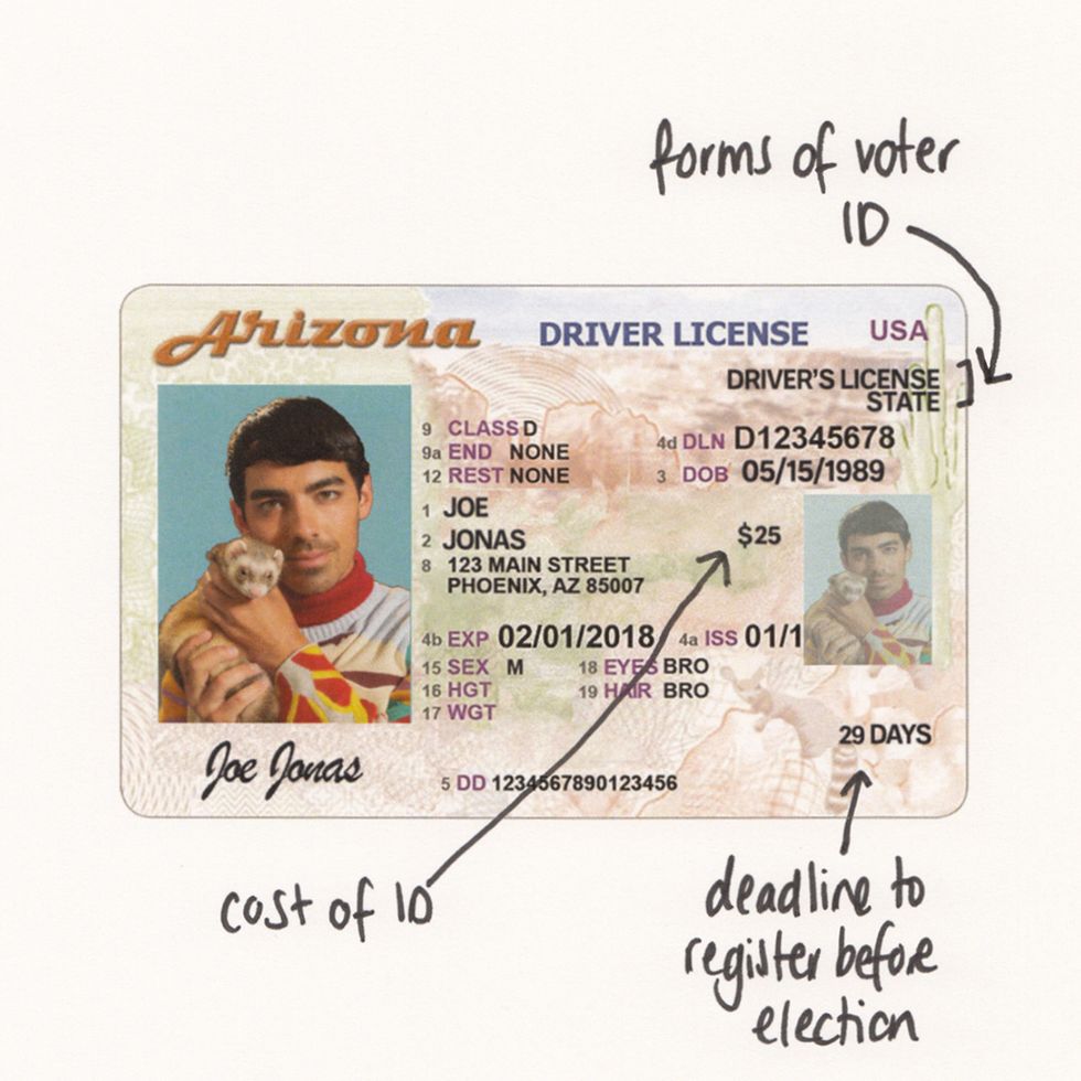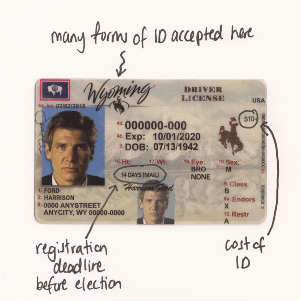 To find out, scroll down to your state (or hit Ctrl+F) for information on how, where and when to register to vote. A link to get more information for your state is below each ID card, created in partnership with Vote.org: