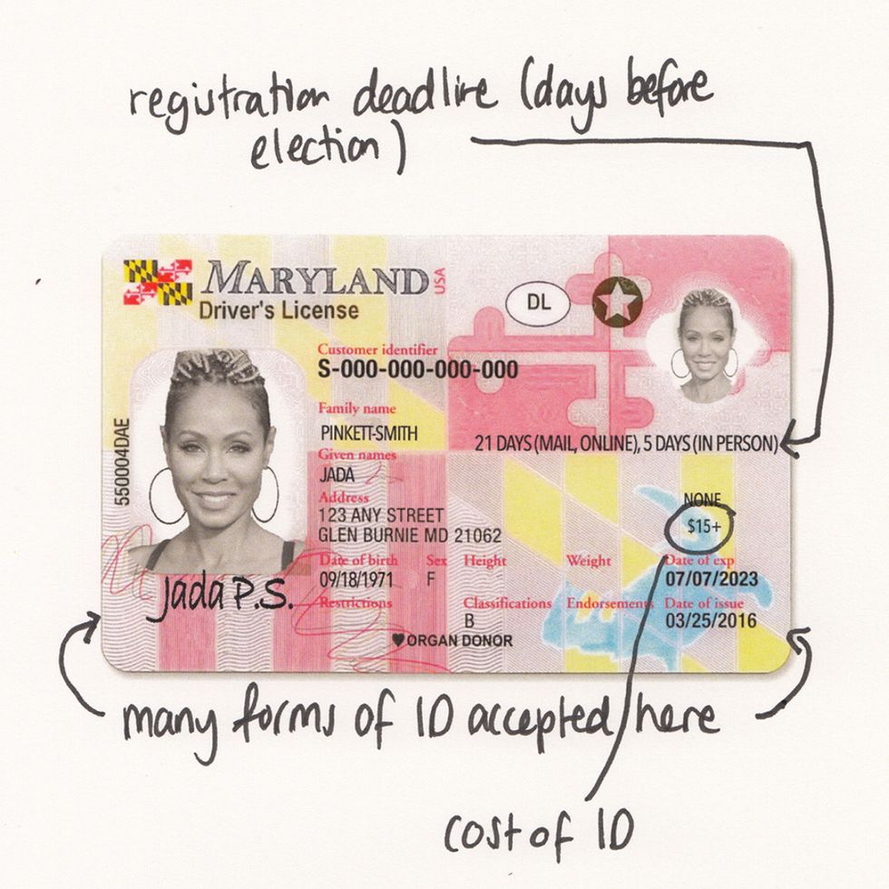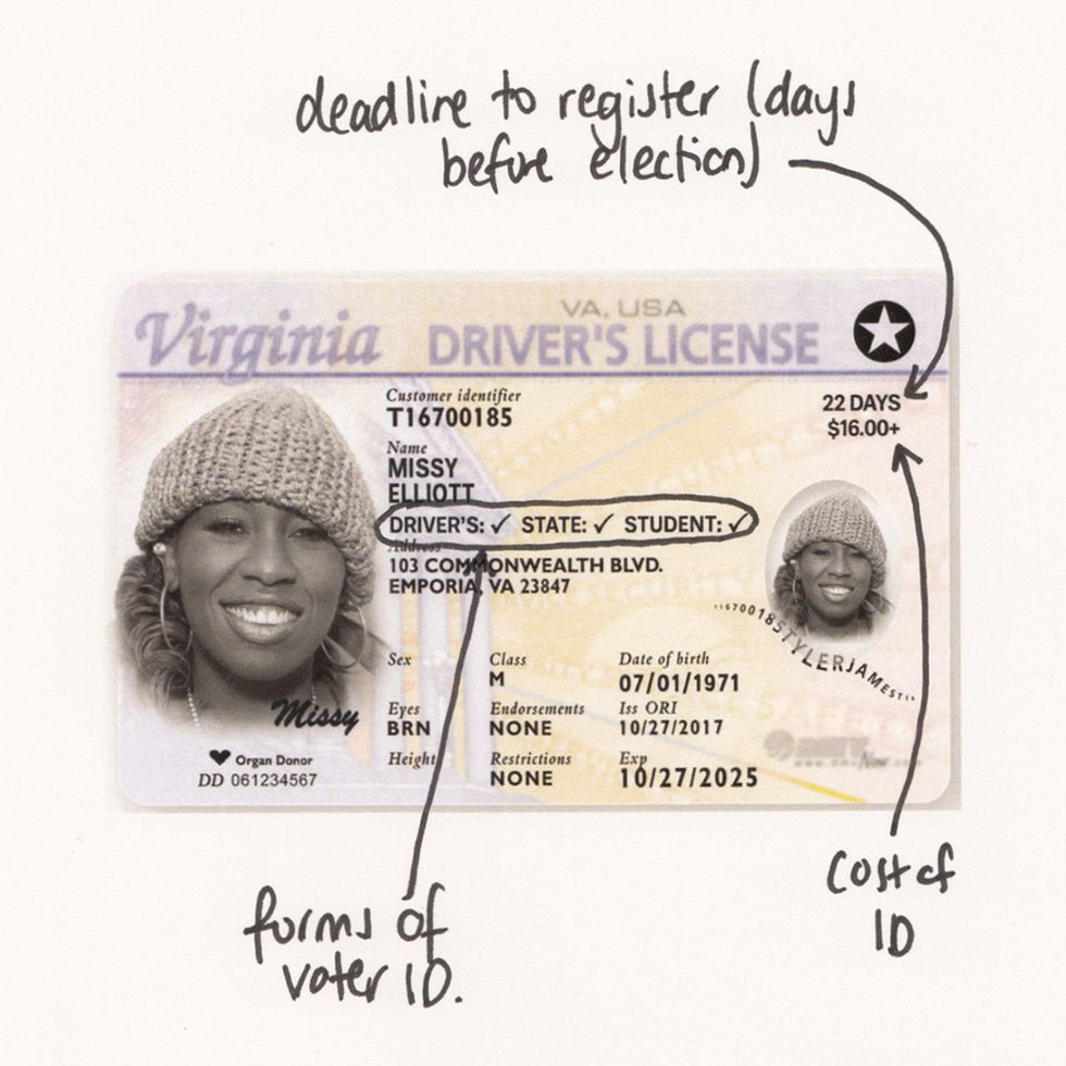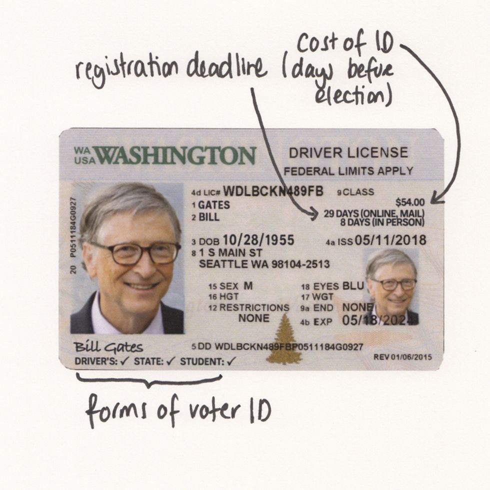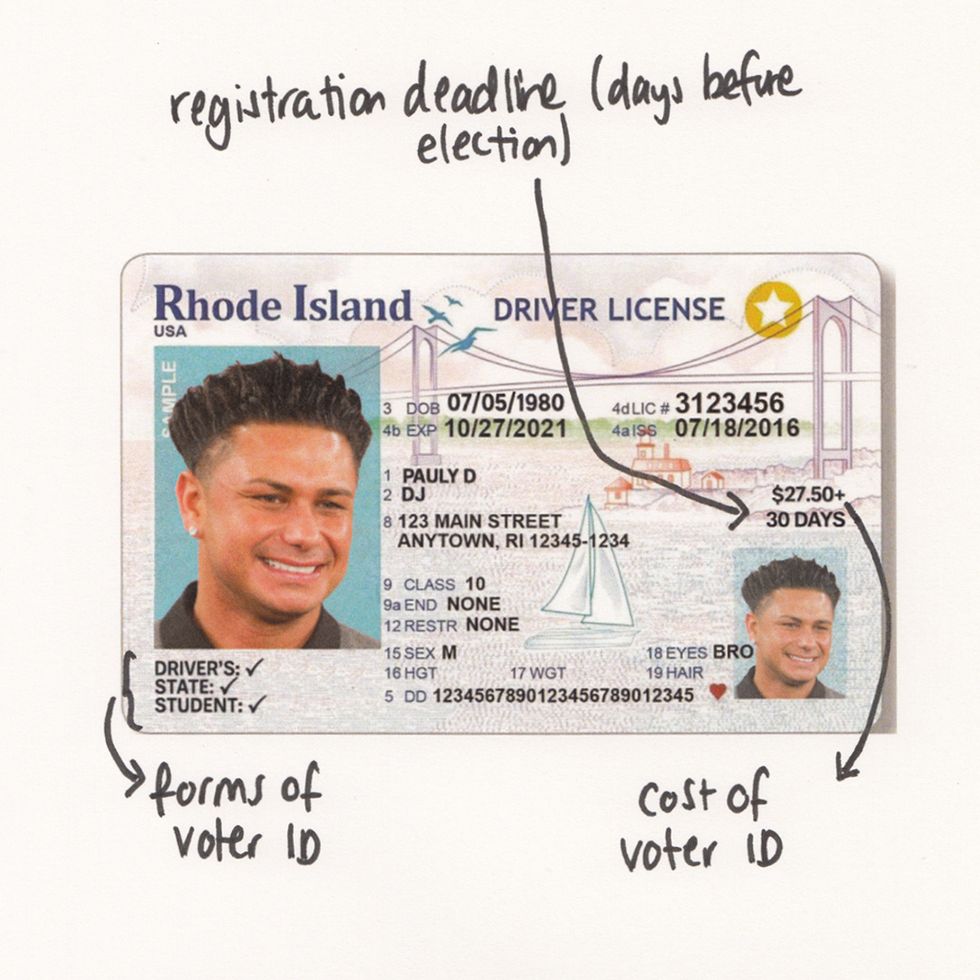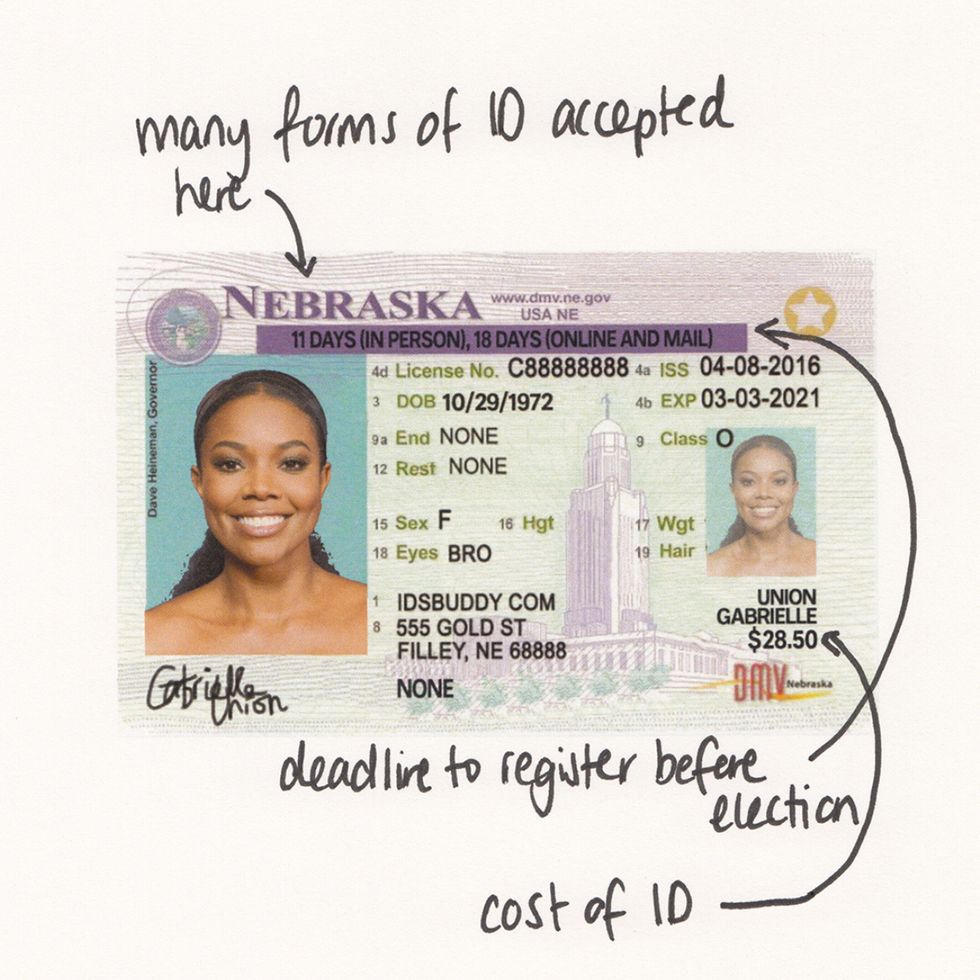 To find out, scroll down to your state (or hit Ctrl+F) for information on how, where and when to register to vote. A link to get more information for your state is below each ID card, created in partnership with Vote.org: