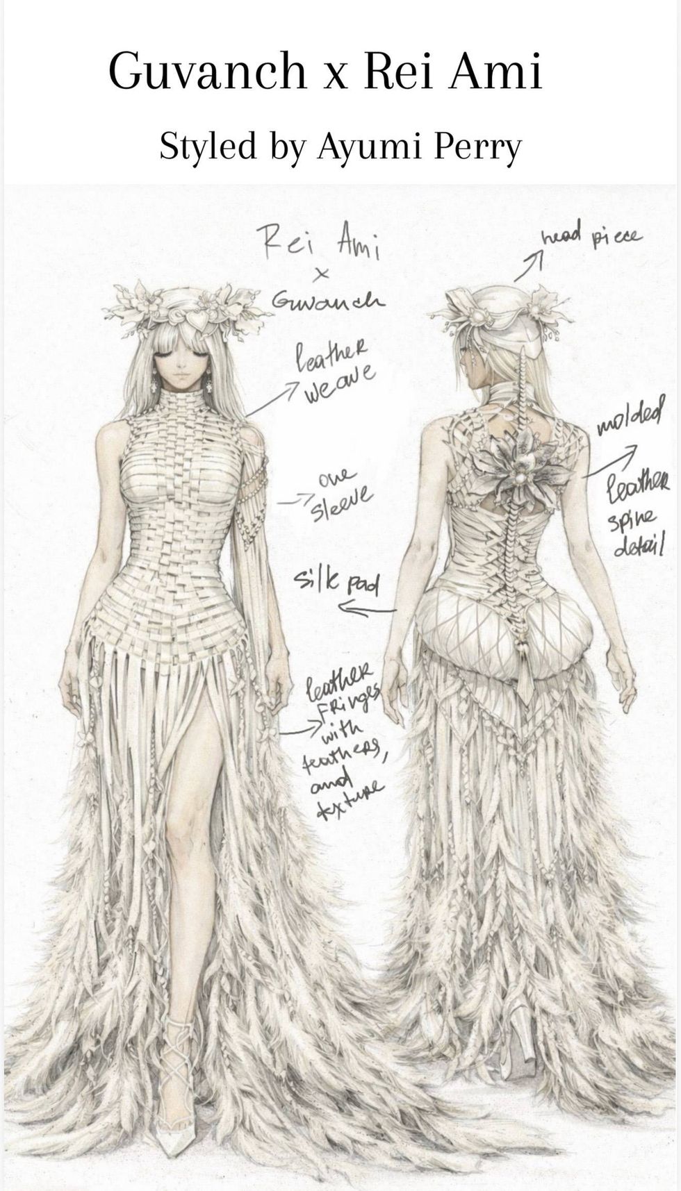 So, it’s a custom look by Guvanch and it was initially inspired by the National Flower of Korea called Mu Kung Hwa which represents resilience. The flower is very representative of Korea and our people and who we are - we’ve always worked hard and showed up no matter the circumstances or challenges. Me and my stylist Ayumi thought of playing with duality to incorporate this massive time of transition in my career and also pay homage to the movie. We thought a combination of airy feathers and durable leather would be very beautiful and of course Guvanch, the visionary that he is, made it work.