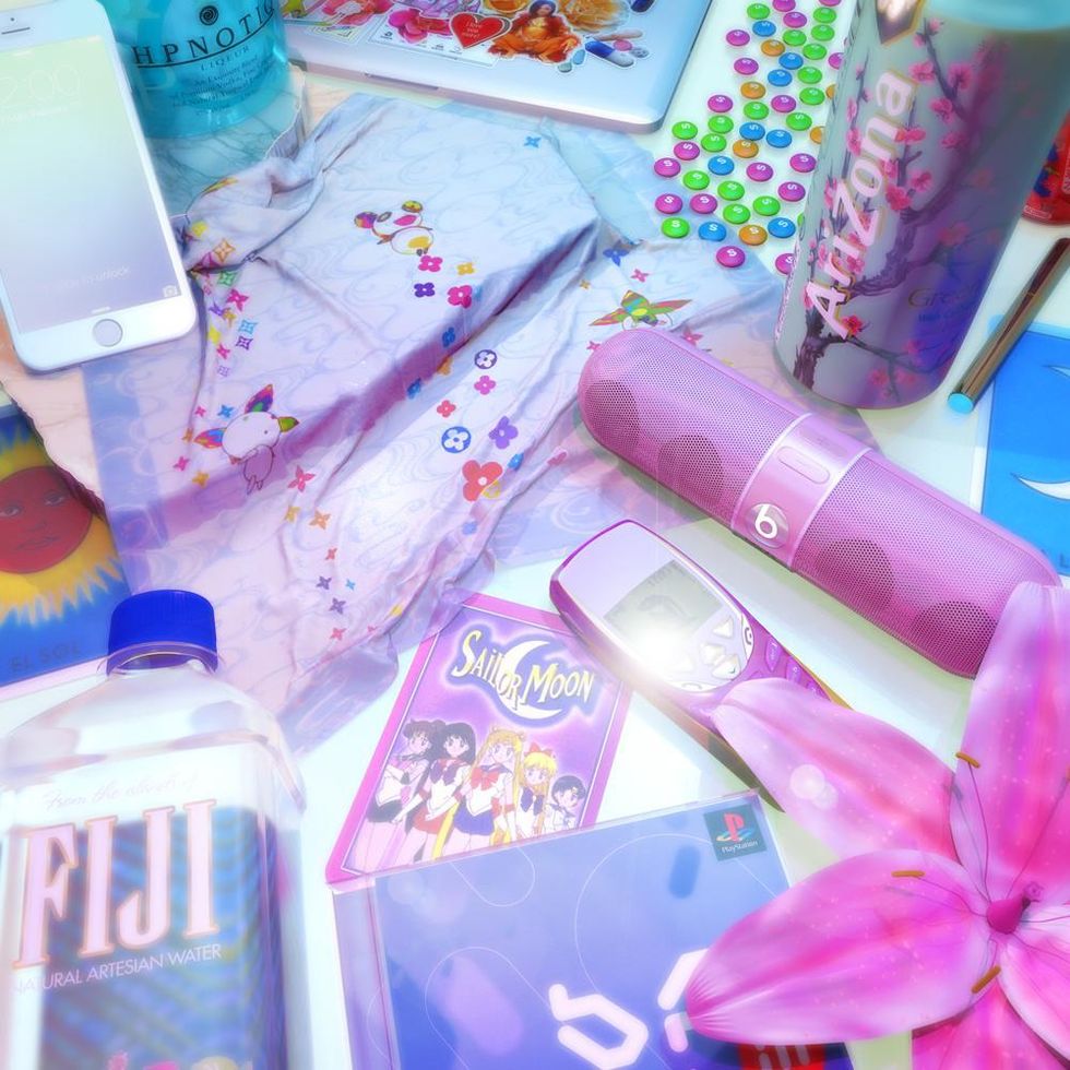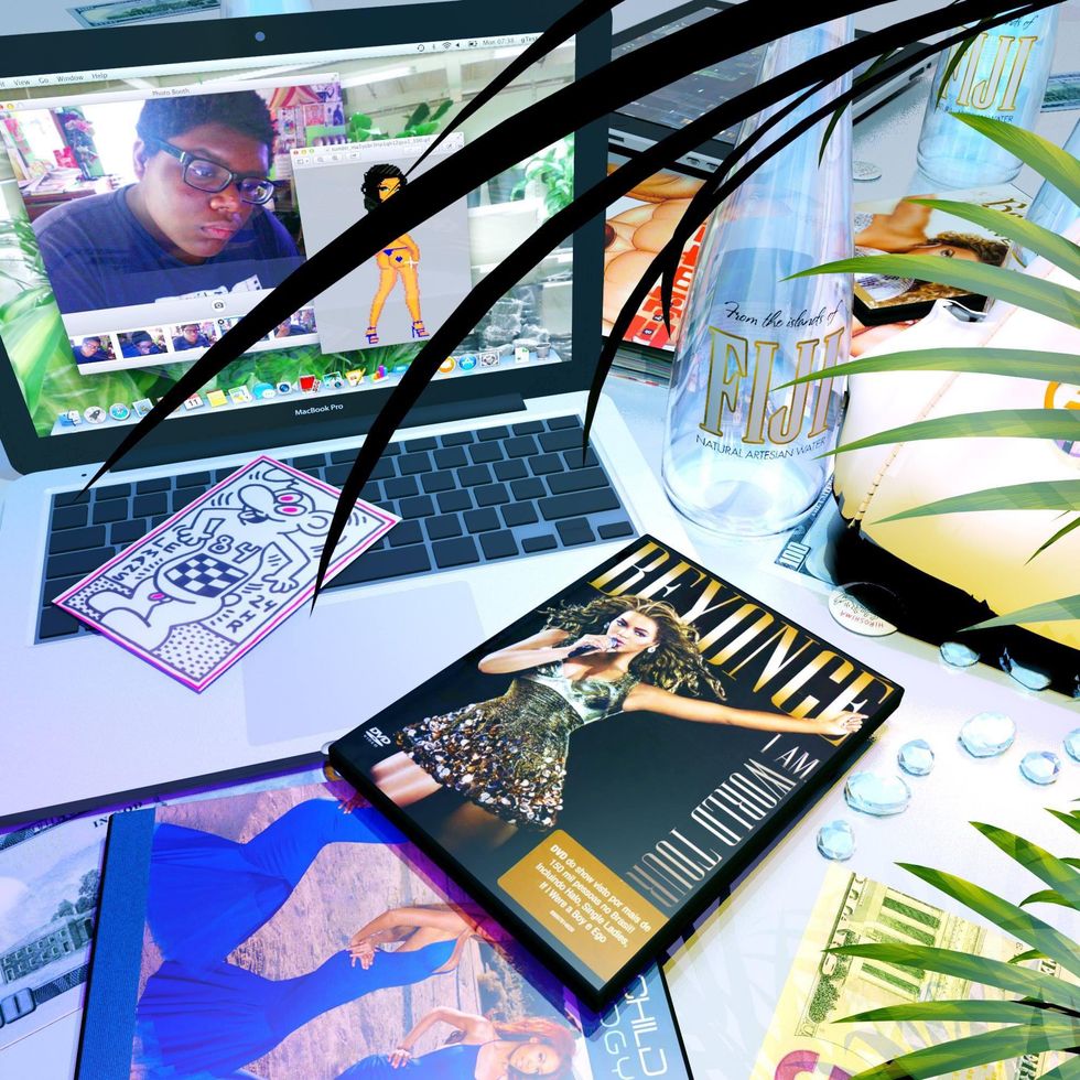 Terrell began working in print when he was young, but as a teen moved entirely to digital, scouring sites like DeviantArt, Myspace and Tumblr for inspiration. "Once he switched to digital, he never went back," Linda says, detailing how her son's passion flourished in high school, when he was gifted his first iMac from known art curator Diego Cortez by way of Nick Dangerfield. Terrell immediately developed his own signature style — a mix of bubbly, euphoric pop culture references nodding to the early noughties and today's consumer-driven culture. "He was always very fond of pink," Linda says, "and he couldn't understand why pink was just for girls."