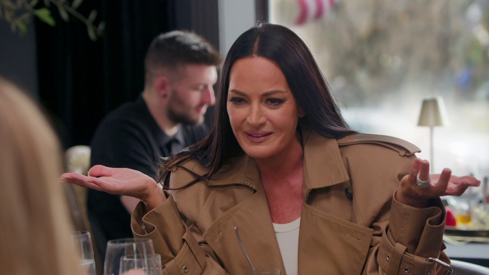 But really, Lisa Barlow is flailing. She's completely isolated herself from the group dynamic, which makes her functionally useless on this cast except as a punching bag. It doesn't help her glam has also been left behind, what with this confusing braid situation and ill-fitting gray top. I wonder if the money is indeed tighter than in recent seasons, or she's completely checked out of the process. It's sad to see!