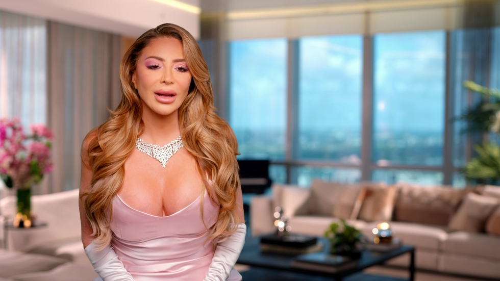 I have nothing to say here. I just wanted to point out the cock cage Guerdy is wearing and this full body velvet bodysuit Larsa has on with her fifteen hair extensions.