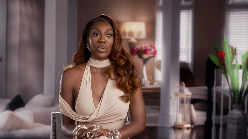 Wendy Osefo might have been arrested. Wendy Osefo might have been charged with fraud. Wendy Osefo might have investigators beating down her block to triple check her credit card transactions. Wendy Osefo might be preparing for court. But Wendy Osefo does not look bad on television! The dress might be slightly cheap, and made of stretch fabric. But Wendy Osefo does not look bad on television! In fact, Wendy Osefo looks like a total glamorpuss on television — I just hope none of these jewels were stolen in the robbery.
