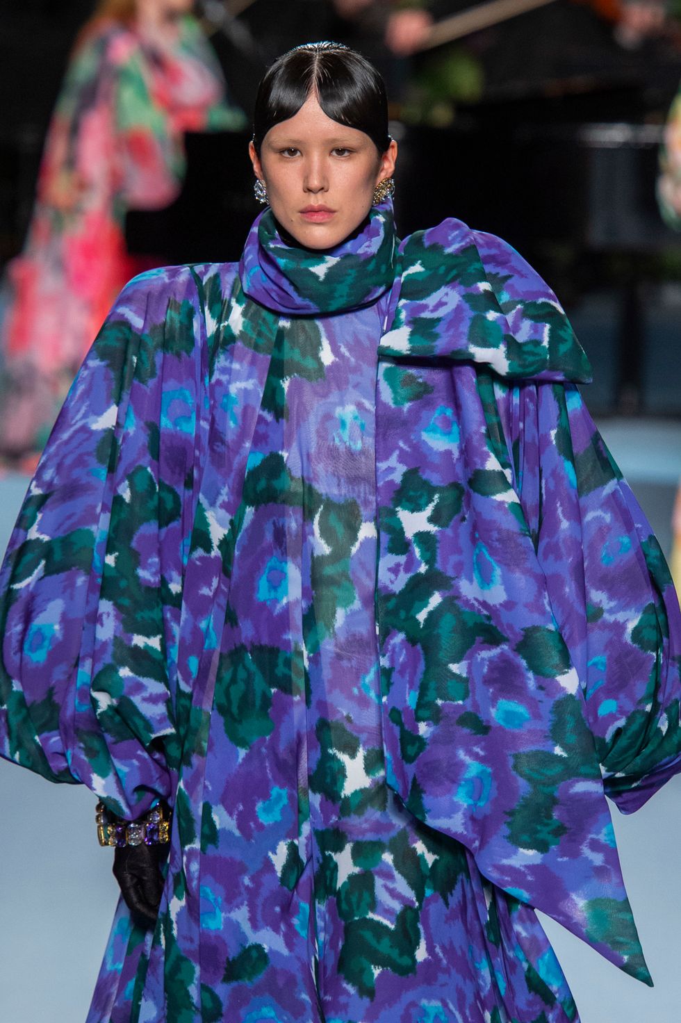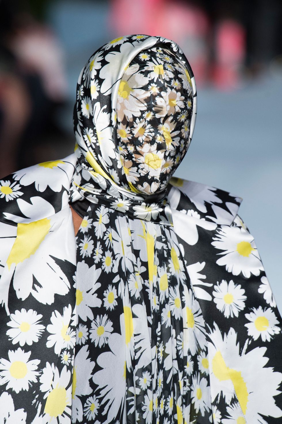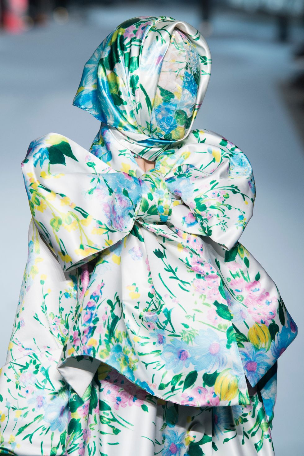 There were also several looks shown on models wherein their faces were covered with the same floral fabrics as the gowns. It may have felt slightly Margiela-esque but it also underscored the power of print in this collection.