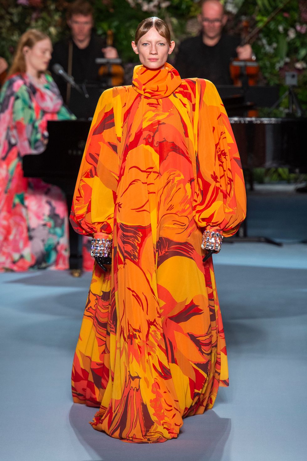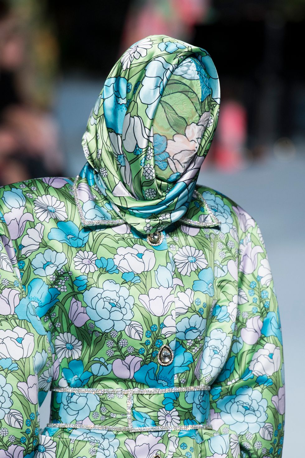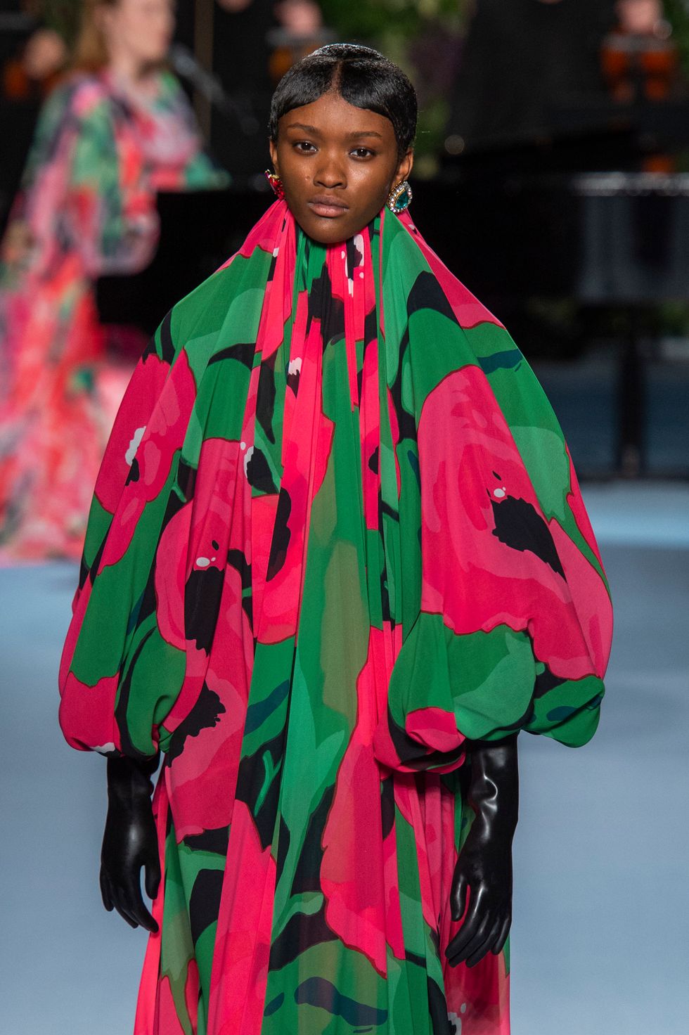 There were also several looks shown on models wherein their faces were covered with the same floral fabrics as the gowns. It may have felt slightly Margiela-esque but it also underscored the power of print in this collection.