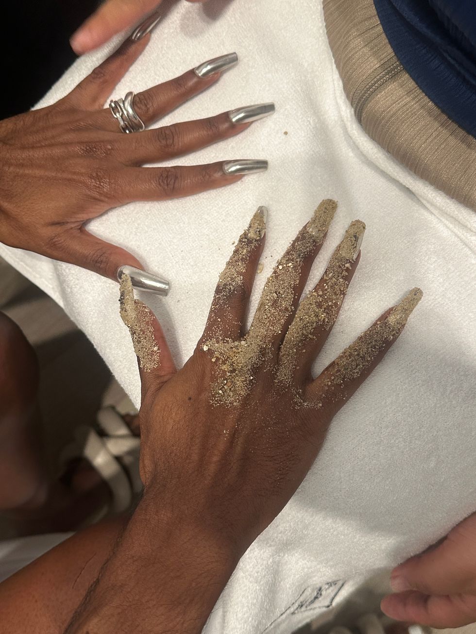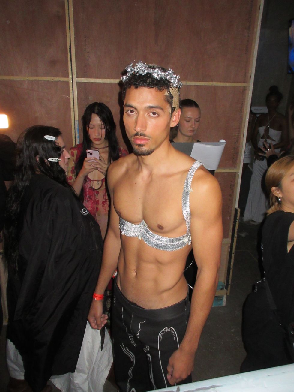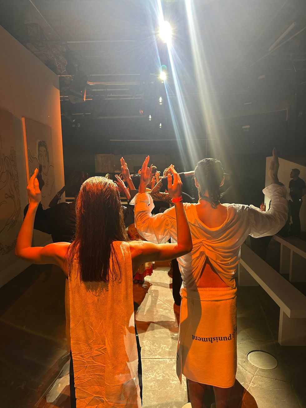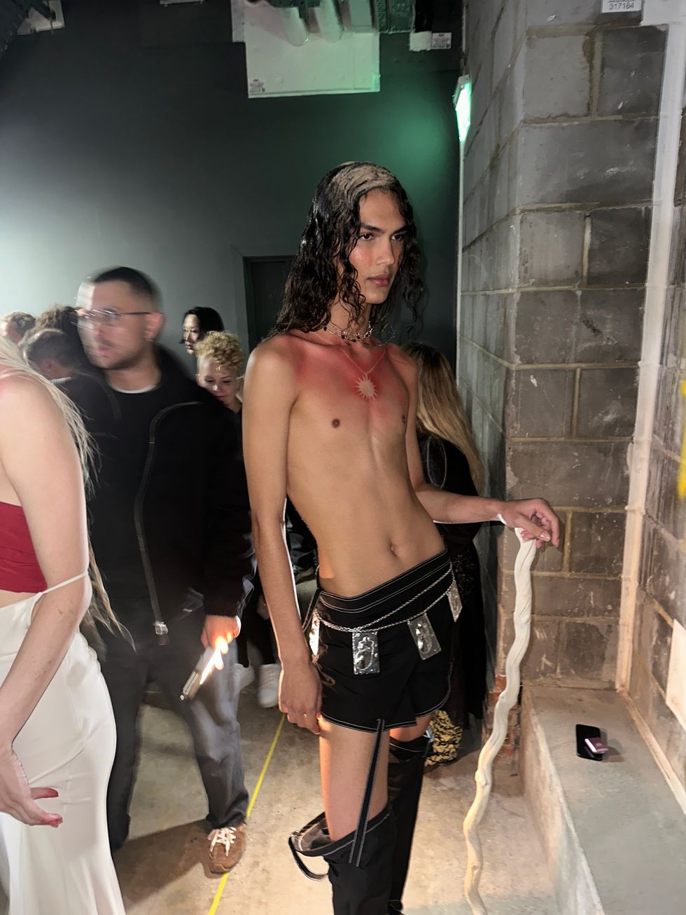 “‘My Body Is a Labyrinth’ invites us to embrace the parts of ourselves that have been hidden in the shadows,” Petsa’s notes continued, “Offering both release and redemption.” Indeed, her clothes looked powerful, with dresses swathed around hips and chests in beachy sunset pastels. One model carried a blazing torch wearing only a brief suspended by a long chain necklace. Richie Shazam also made a runway appearance, her fingers covered by sand and dripping in a dramatic cream dress — "steamy sexy vibes," as she described to PAPER.