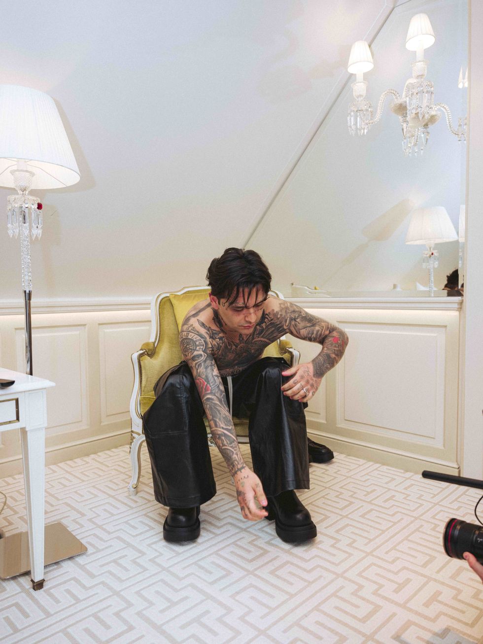It’s very special to be in Paris getting ready for my first Rick Owens show. When getting ready, I like to take my time, and I work with my groomer, Realiz. For this season, I self-styled alongside the designer’s teams. I saw this look at the Rick Owens showroom and knew it was the one.