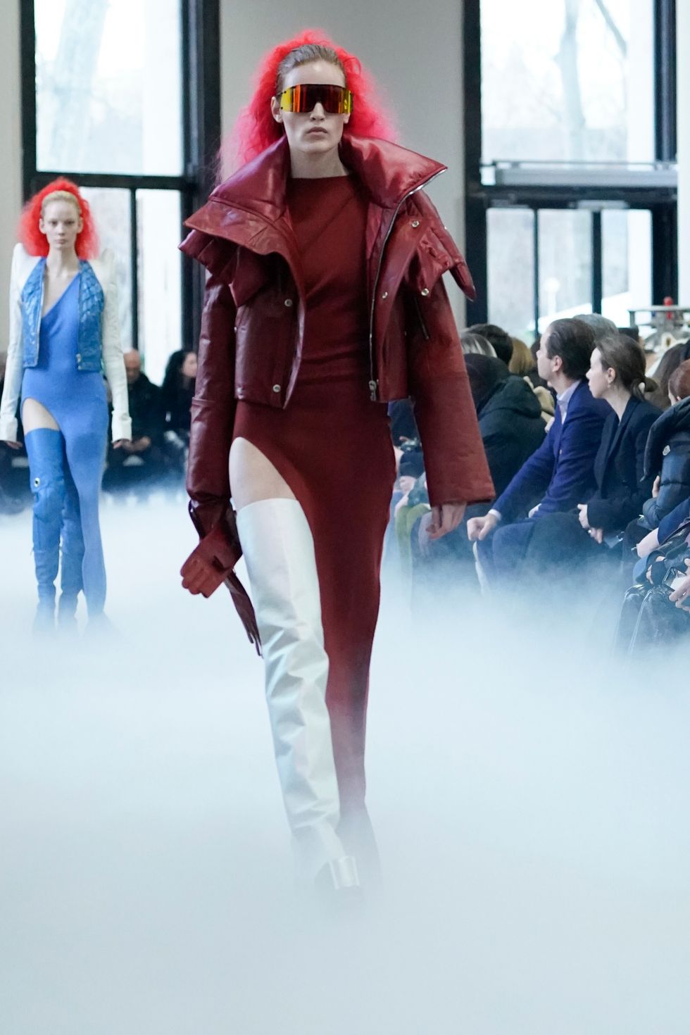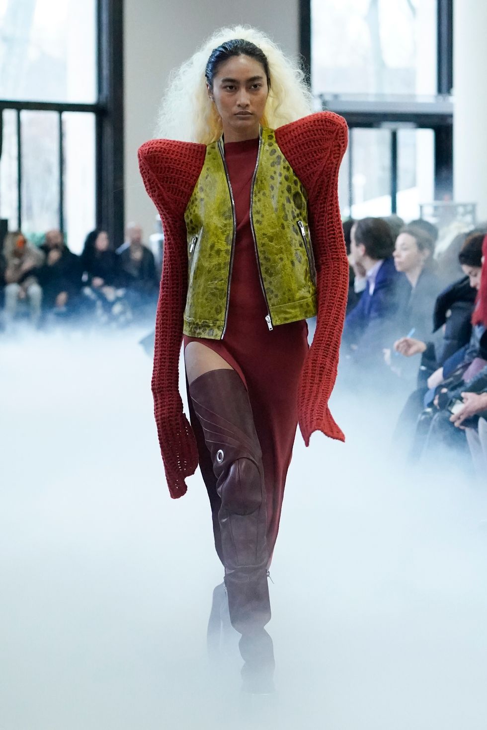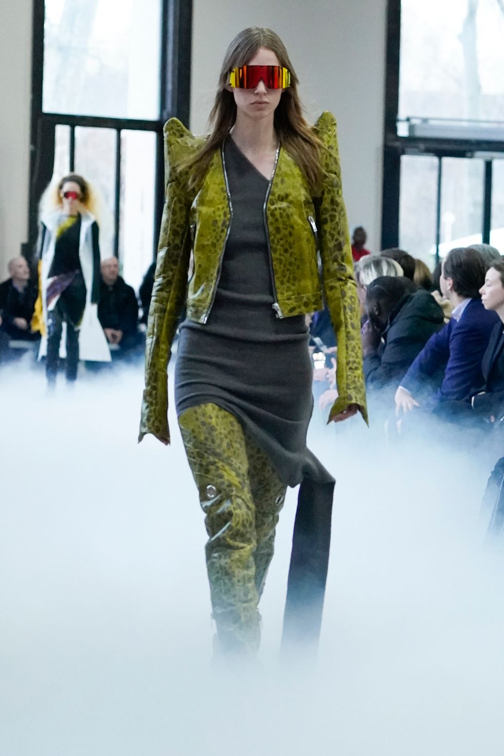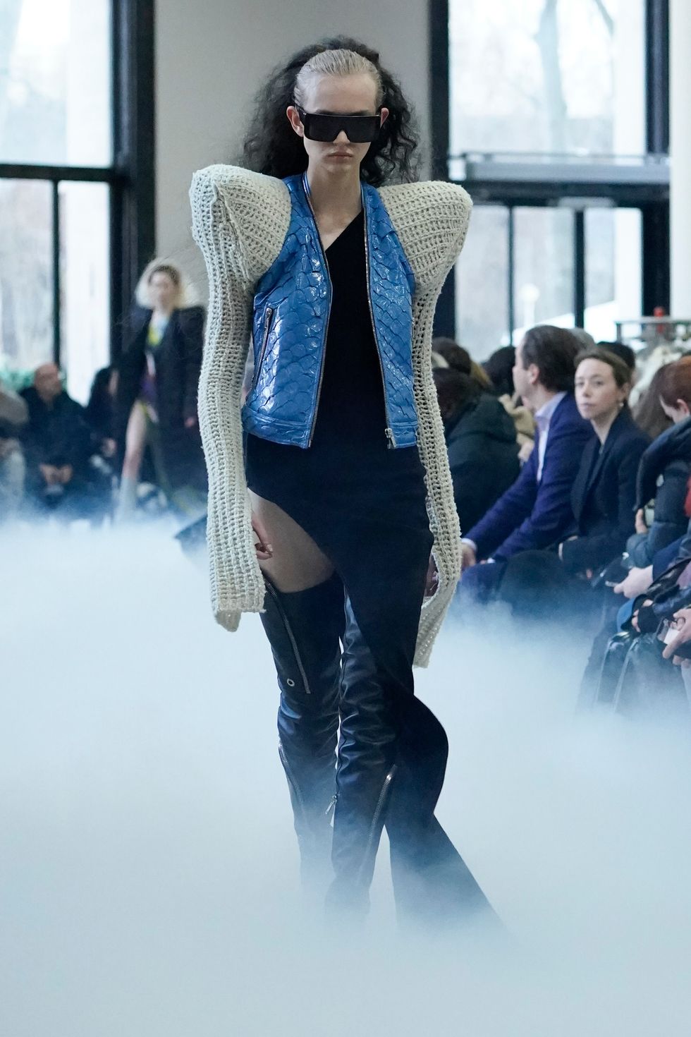 As for Owens' actual show (which included an appearance by Gwendoline Christie), he continued some similar themes he explored from his recent men's show, including extreme shoulders, clingy knits, bare legs and graphic patterns. See below for more photos from Rick Owens Fall 2020.