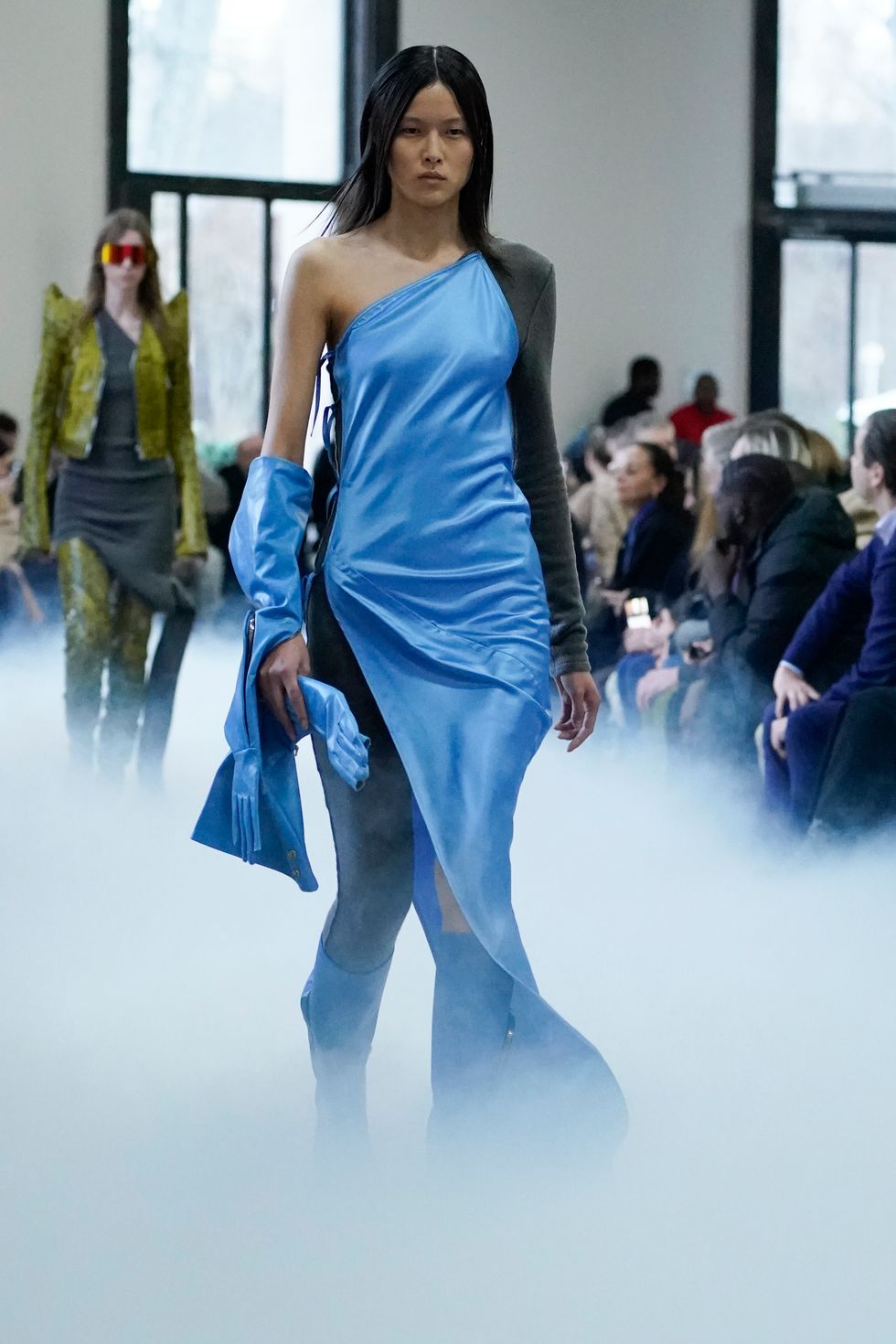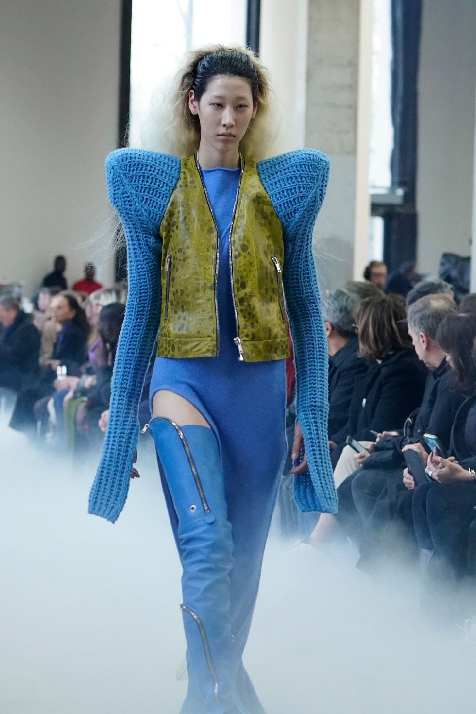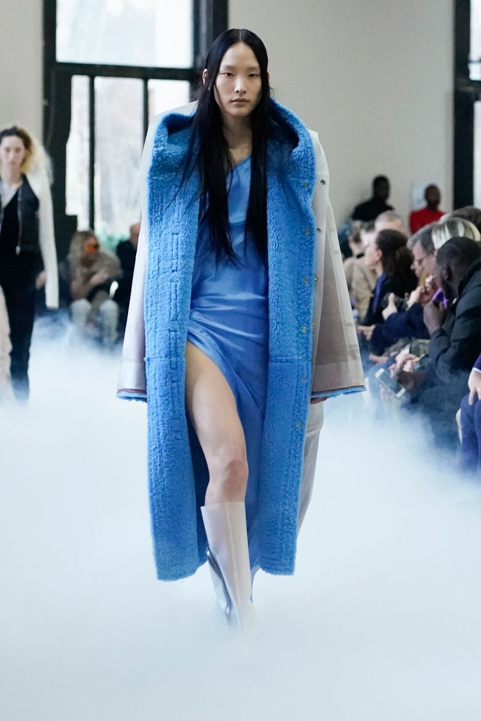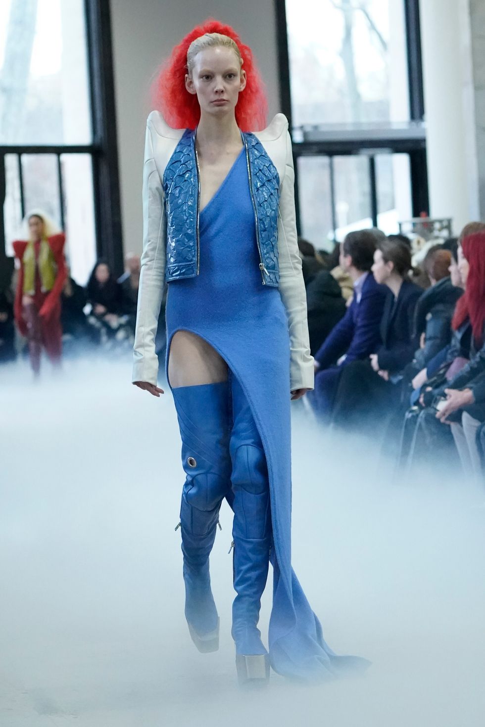 As for Owens' actual show (which included an appearance by Gwendoline Christie), he continued some similar themes he explored from his recent men's show, including extreme shoulders, clingy knits, bare legs and graphic patterns. See below for more photos from Rick Owens Fall 2020.